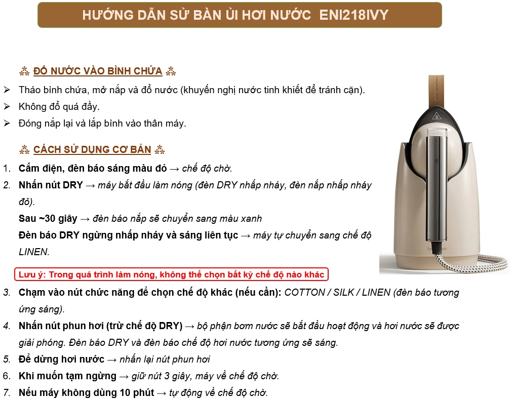 THIẾT KẾ NHỎ GỌN, HIỆU NĂNG VƯỢT TRỘI: Gọn nhẹ hơn bàn ủi đứng, sở hữu bình nước lớn hơn loại cầm tay. Phù hợp cho nhu cầu sử dụng thường xuyên, làm nóng nhanh và dễ dàng cất gọn sau khi dùng