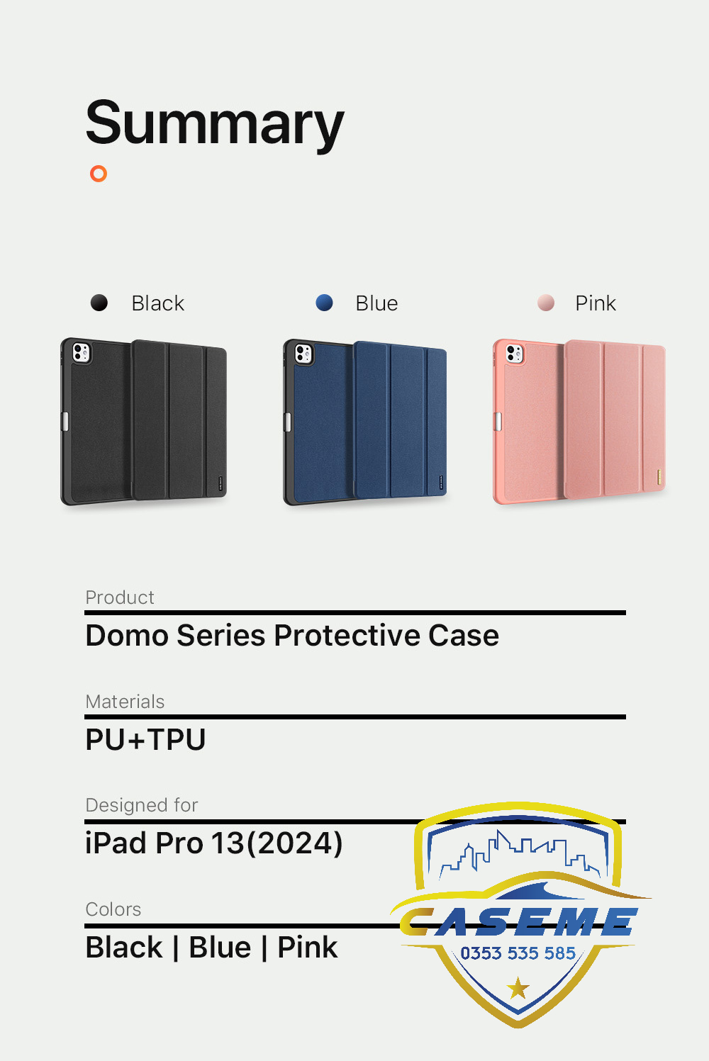 Bao Da Chính Hãng Dux Ducis Domo Kèm Khay Đựng Bút Dành Cho iPad Pro M4 -11 inch 2024. iPad Pro M4 - 13 inch 2024 - Hàng Nhập Khẩu