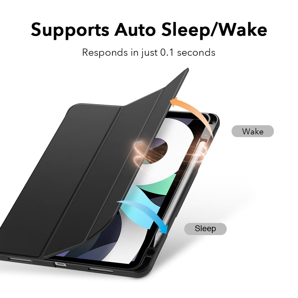 Với hệ thống nam châm chất lượng cao có độ hít phù hợp, nắp của chiếc ốp Esr Rebound Pencil iPad Air sẽ kết hợp với các cảm biến từ trong máy, giúp màn hình luôn sẵn sàng khi mở nắp hoặc tắt khi đóng lại. Không phải sử dụng nút nguồn để tắt màn hình nữa, không cần phải lo bấm nhiều bị chai nút nữa, thật tuyệt vời đúng không!