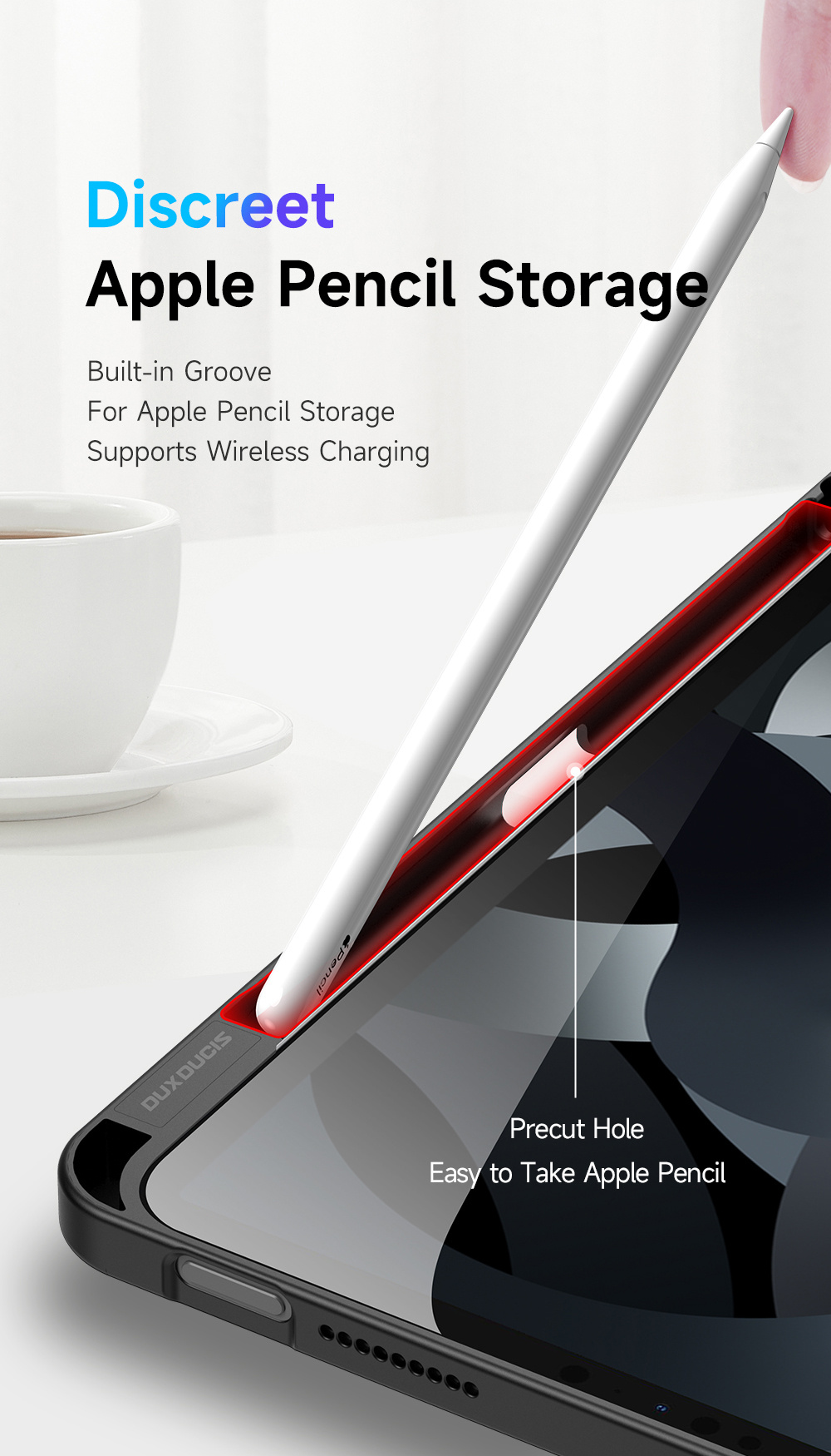 Rãnh tích hợp kín đáo để đựng Apple Pencil hỗ trợ sạc không dây.