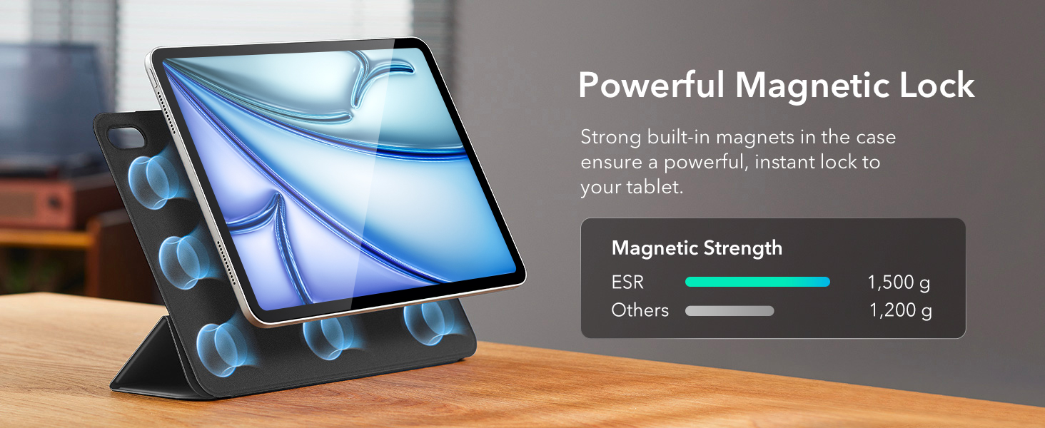 Nam châm mạnh mẽ đảm bảo khóa chắc chắn giữa vỏ và máy tính bảng
