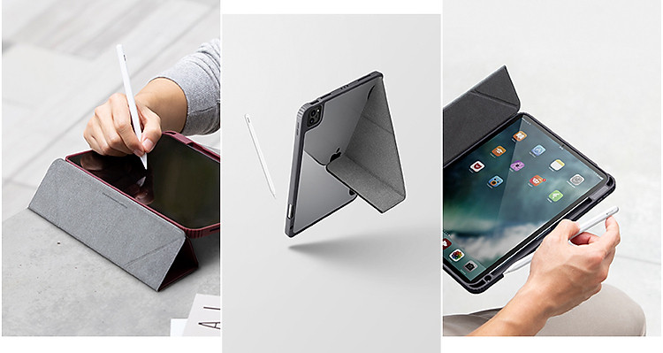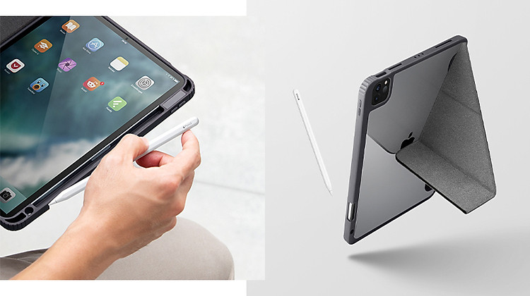 Hãy gặp Moven, một chiếc ốp lưng siêu cứng với mặt sau trong suốt chống xước 2H. Đi kèm với một ốp lưng ShockArmor được gia cố chắc chắn và các góc được gia cố cực kỳ chắc chắn - tất cả đều nằm trong một cấu hình siêu mỏng. Cất và sạc Apple Pencil của bạn khi đang di chuyển trong giá đỡ tích hợp được thiết kế để dễ cất giữ và tháo lắp.