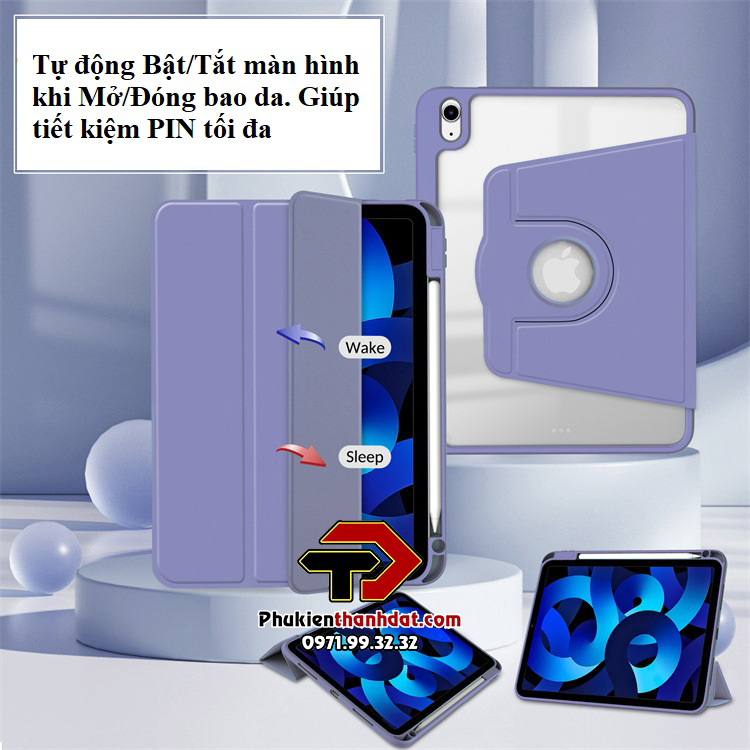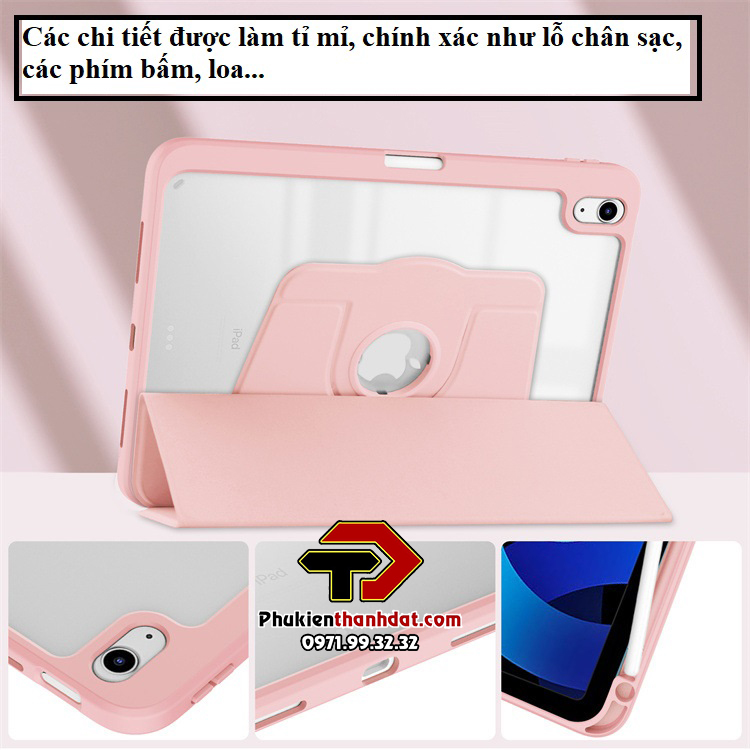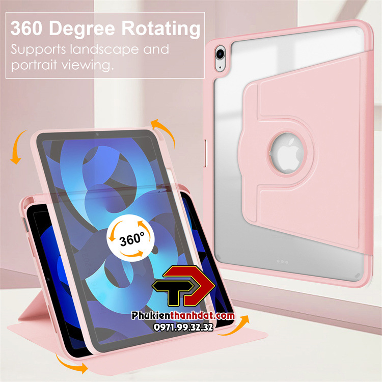 Bao da xoay 360 độ cho 10.9 inch chống sốc, có ngăn đựng bút tiện lợi.