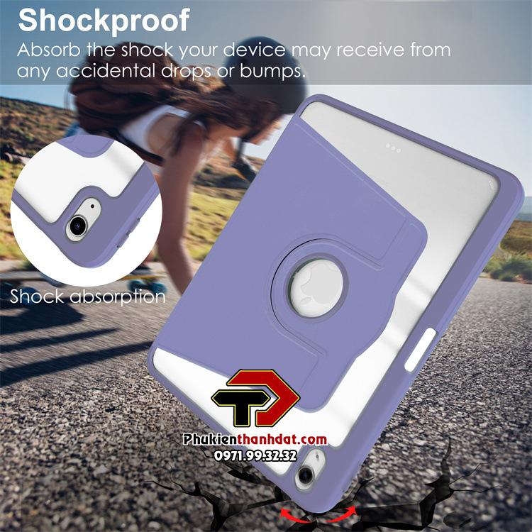 Bao da xoay 360 độ cho 10.9 inch chống sốc, có ngăn đựng bút lưng trong suốt bảo vệ máy tính bảng của bạn chống trầy xước, bẩn, dầu và va đập. Các nút và cổng tai nghe vẫn dễ dàng truy cập. Sản phẩm được thiết kế ngăn đựng bút riêng tiện lợi.