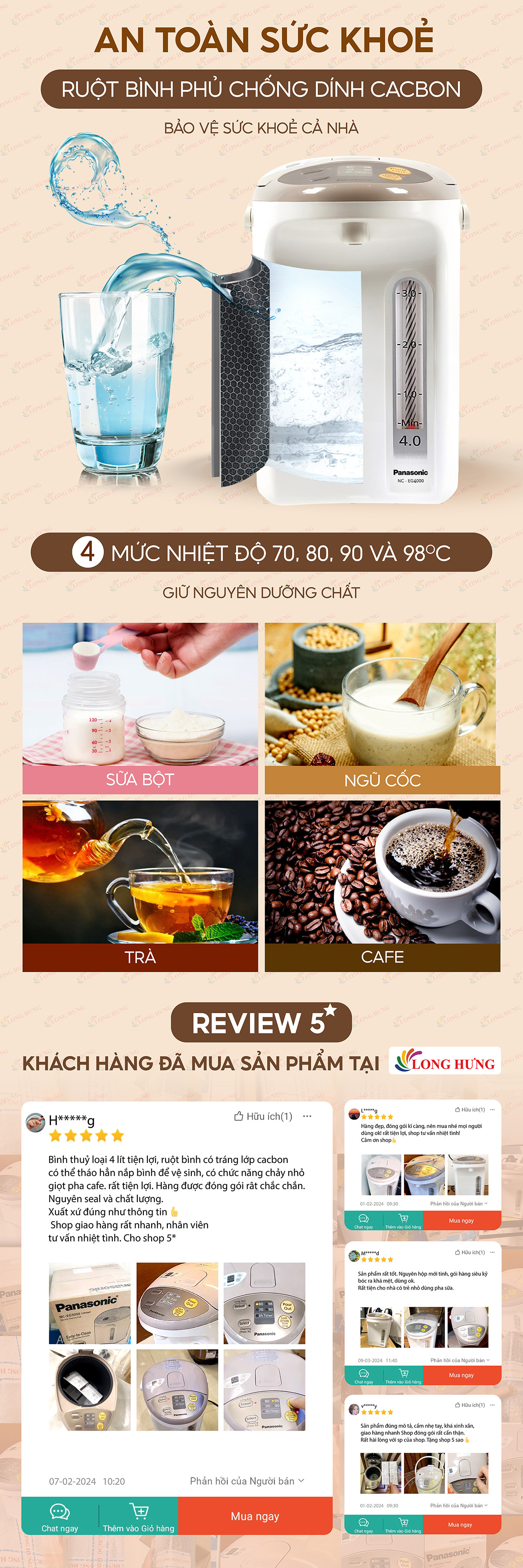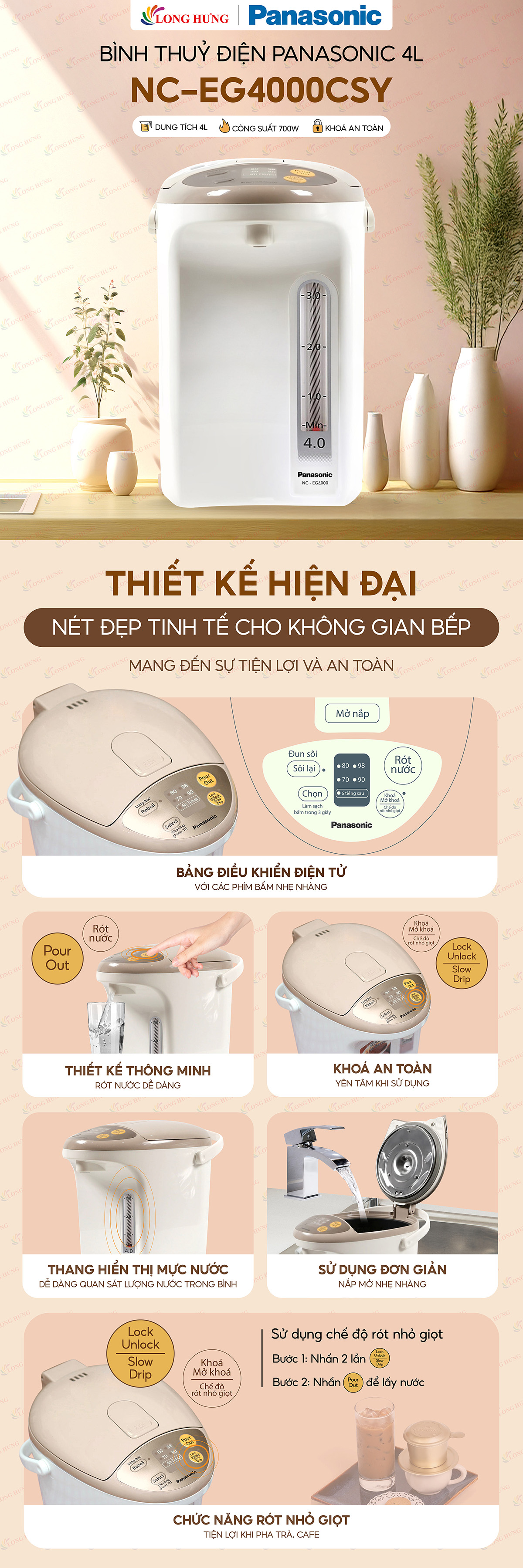 Bình thủy điện Panasonic 4.0 lít NC-EG4000CSY - Hàng chính hãng