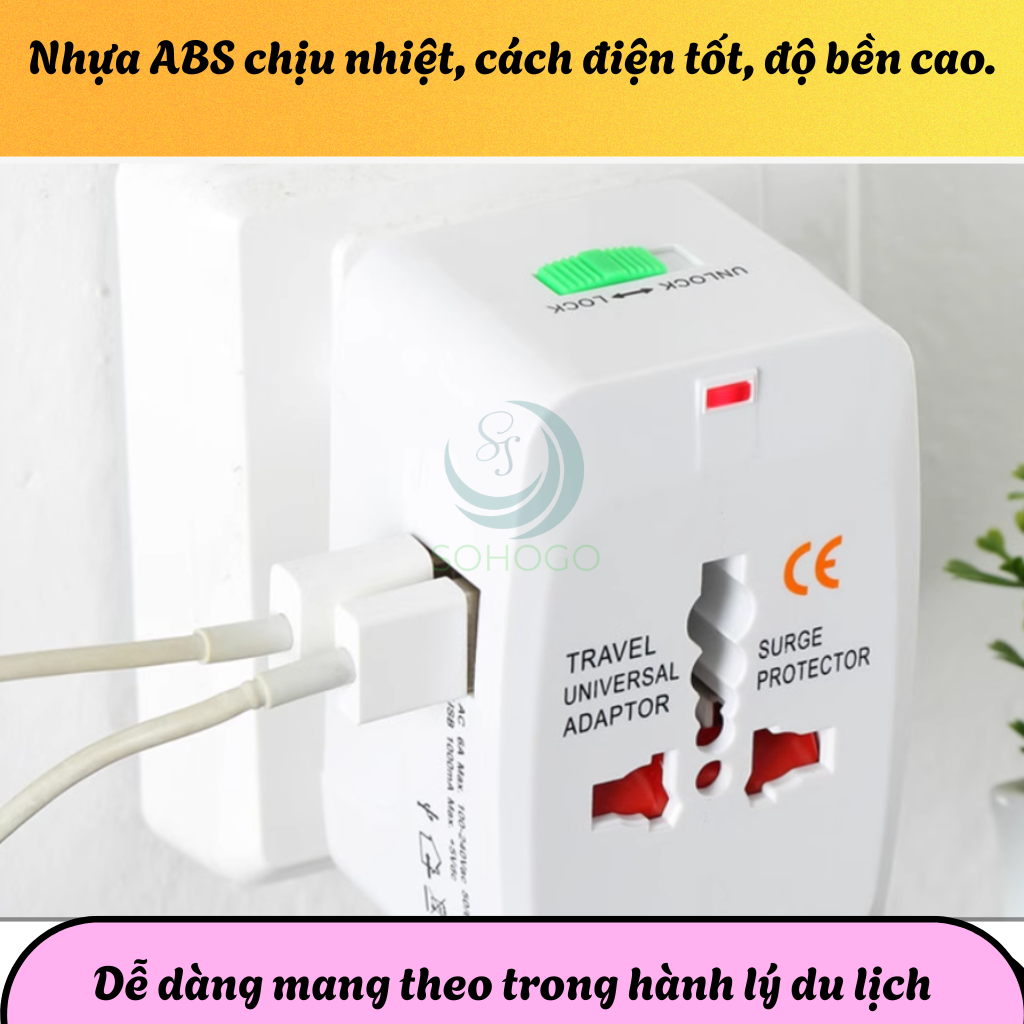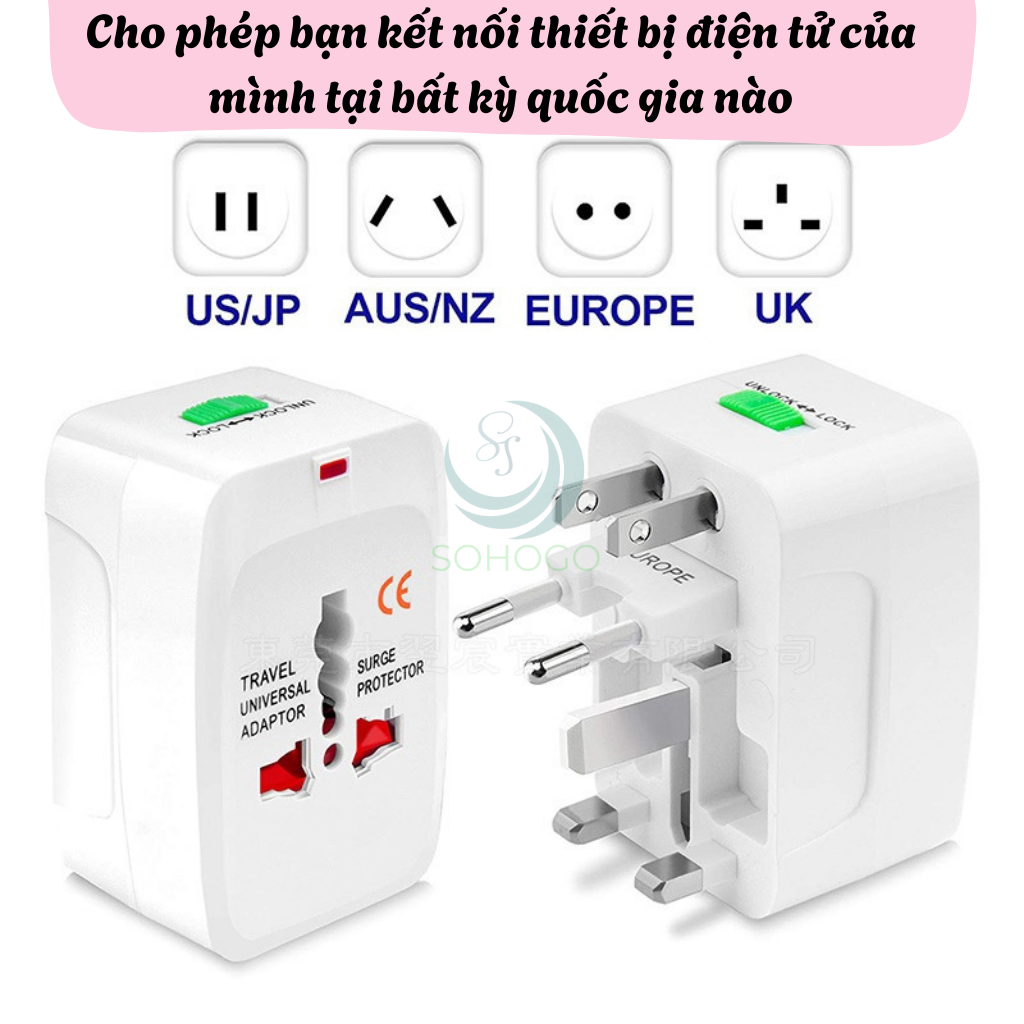 Sản phẩm là bộ chuyển đổi điện du lịch đa năng, cho phép bạn kết nối thiết bị điện tử của mình tại bất kỳ quốc gia nào. Với thiết kế tích hợp các đầu cắm chuẩn của Mỹ/ Nhật (US/JP), Úc/ New Zealand (AUS/NZ), Châu Âu (EU), và Anh (UK), đây là một vật dụng không thể thiếu khi đi du lịch, công tác quốc tế.