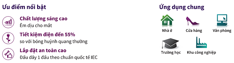 - Tiết kiệm điện đến 55% so với bóng huỳnh quang thường