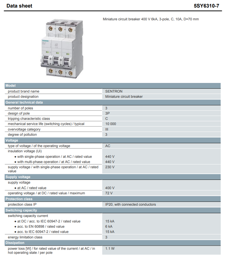 Cầu Dao Dạng Tép Tự Động / MCB Siemens 5SY6310-7 | Hàng Chính Hãng