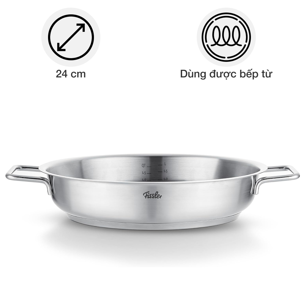 Chảo inox Fissler 086-384-24-100/0 Pure, 24cm Made in Germany Hàng chính hãng
