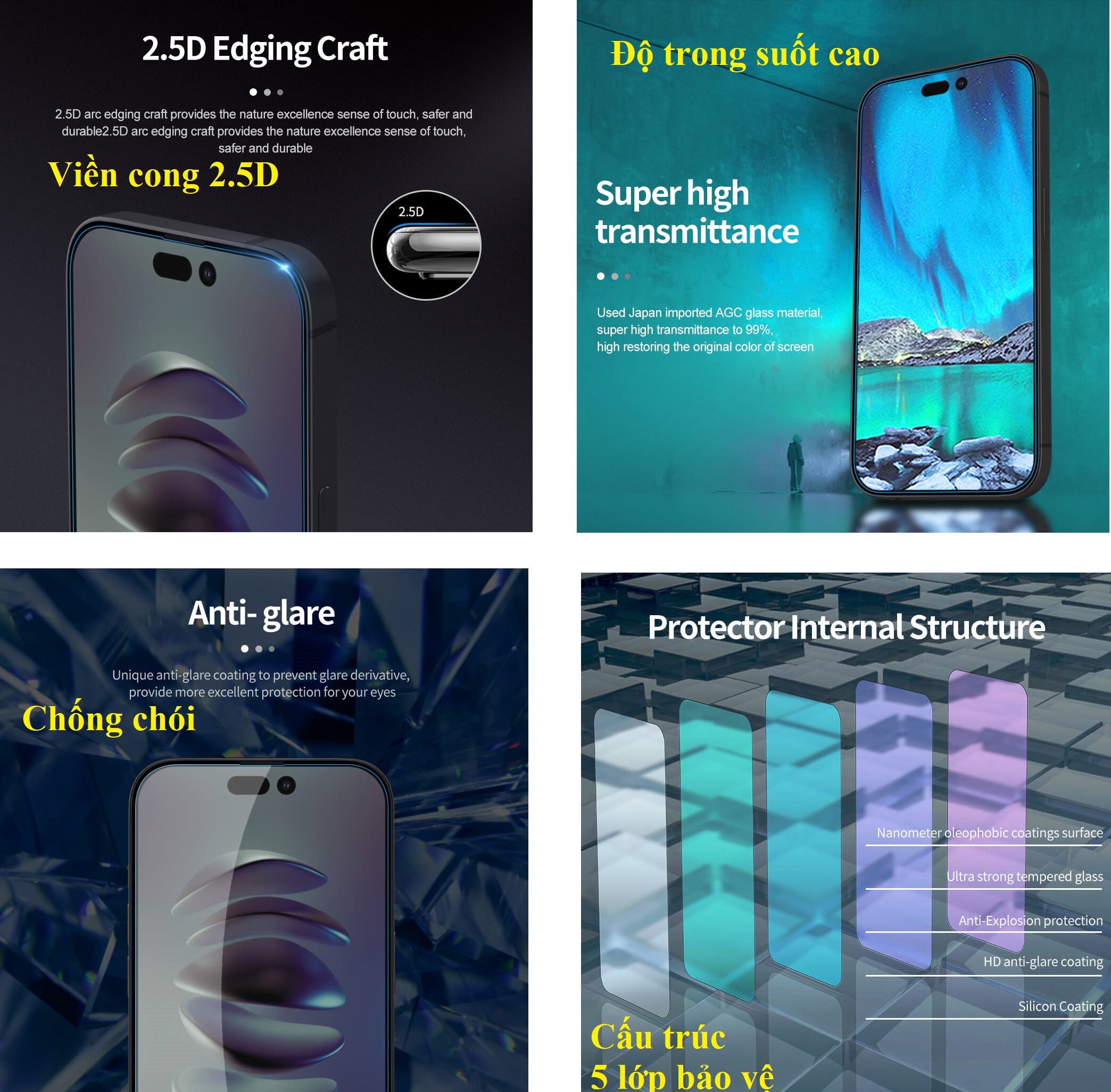 ● Chống lực va đập, chống chói, hạn chế bám bụi và dầu tay.