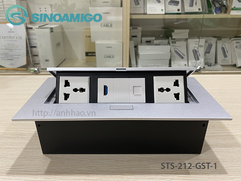 Hộp ổ cắm điện âm bàn tích hợp Lan, USB data 3.0 Sinoamigo STS-212GST-1 chính hãng