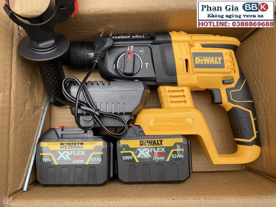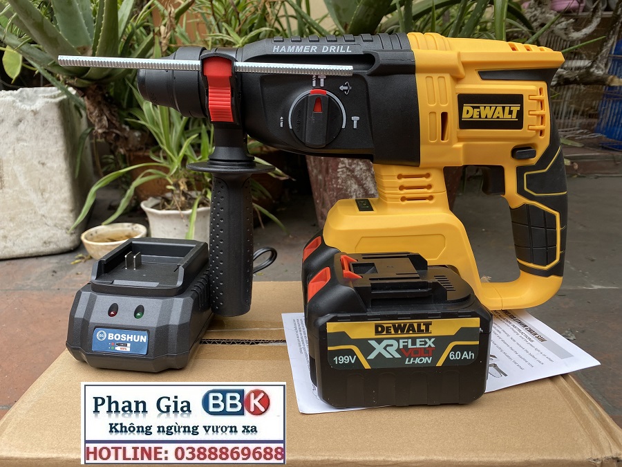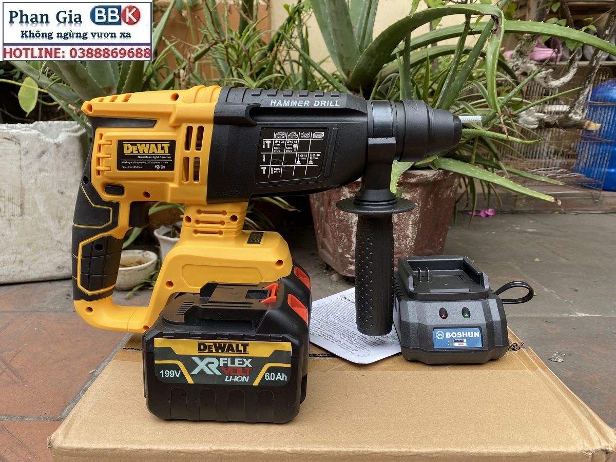Máy Khoan Đục Bê Tông 199V - 3 Chức Năng: Khoan, khoan búa, đục - Động Cơ Không Chổ Than 100% Lõi Đồng