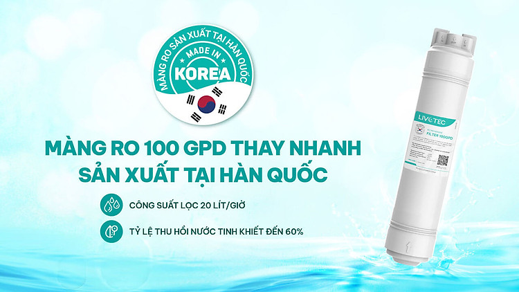 Loại bỏ 99,99% virus, vi khuẩn, amip, asen, các ion kim loại và các chất độc hại trong nước. Công suất lọc tối đa lên đến 20L/h, tỷ lệ thu hồi nước lên đến 60%