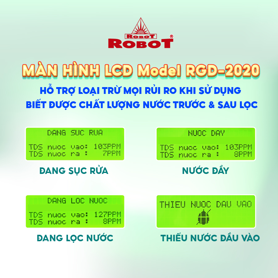 Duy trì mục tiêu lan tỏa nguồn nước tốt đến với cộng đồng, các sản phẩm từ nhà sản xuất ROBOT luôn ổn định với mức giá tối ưu và cùng nhiều chương trình ưu đãi, khuyến mãi trong năm mang đến lợi ích tối đa cho người dùng.