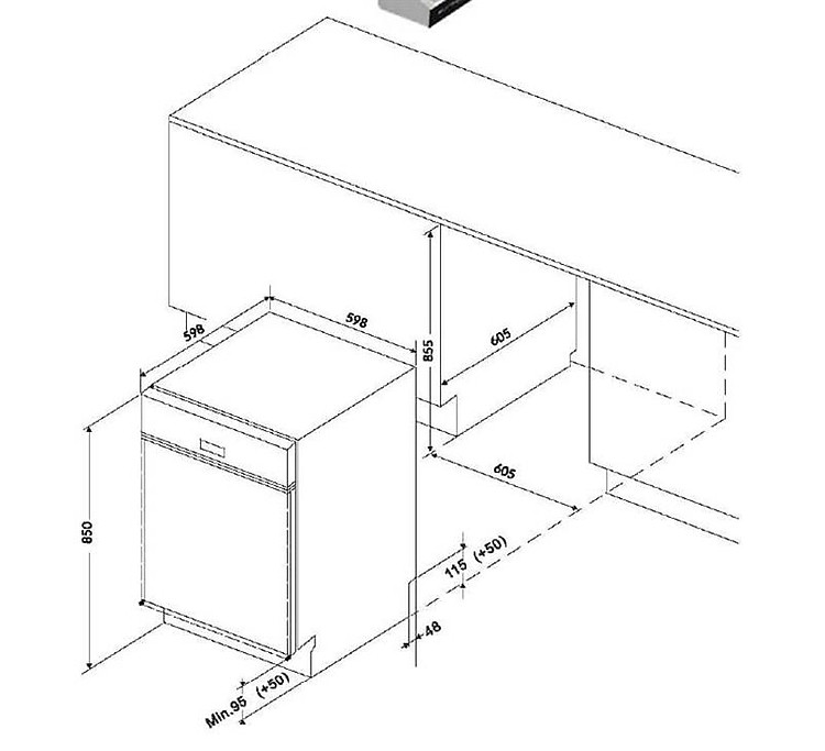 - Kích thước khoét âm tủ: 605R x 600S x 820-870C (mm)