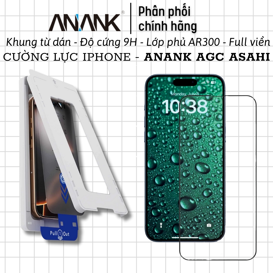 Miến dán kính cường lực khung tự dán màn hình cho iPhone 17 Pro Max / 17 Pro / 16 Pro Max / 15 Pro Max hiệu ANANK AGC 2.5D - Mỏng 0.25mm, vát 2.5D, Trong Suốt Chuẩn HD, Công nghệ AR300 chống vân dầu - Hàng nhập khẩu