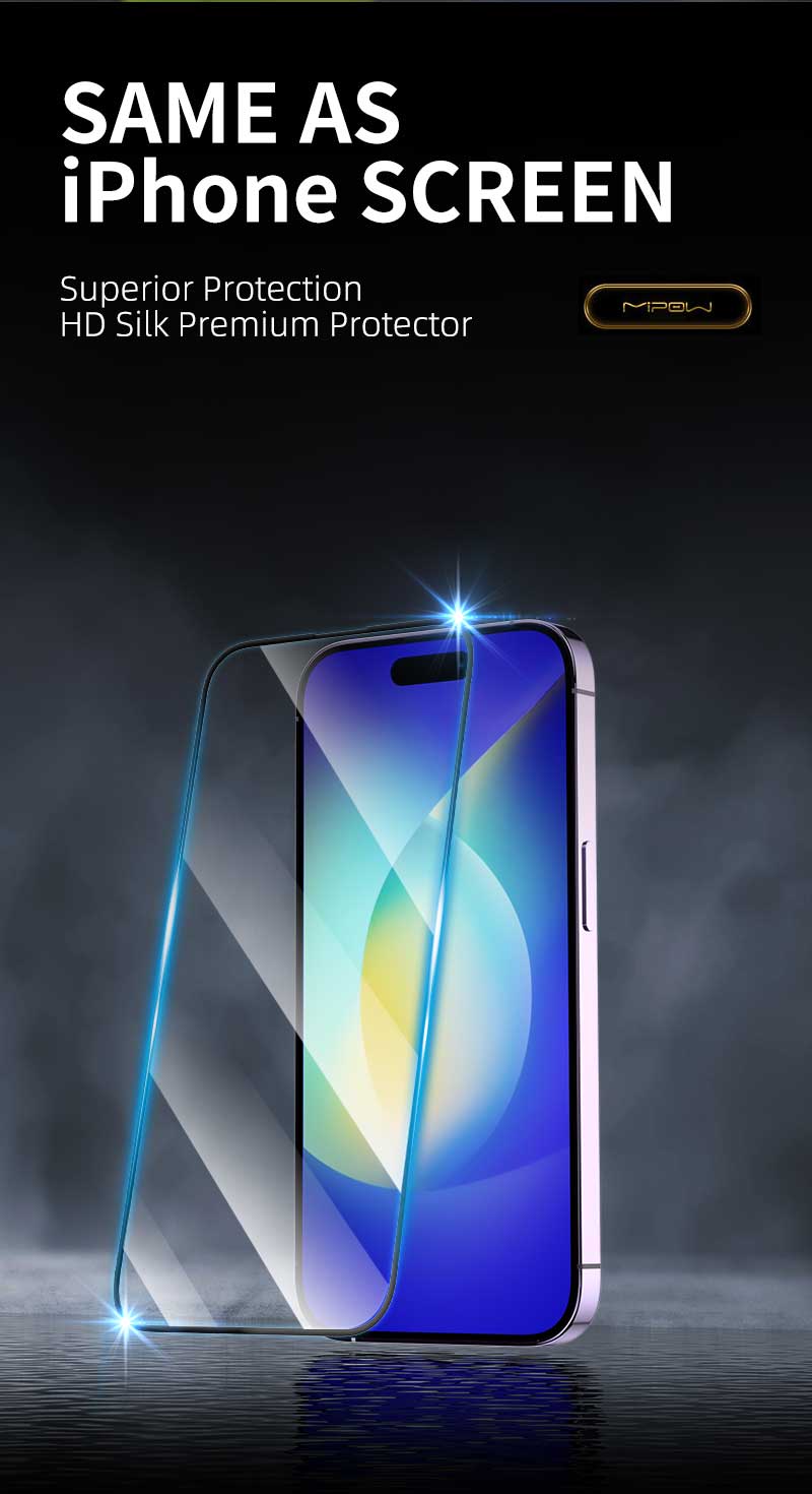 Miếng Dán Kính Cường Lực Trong Suốt Mipow KingBull Dành Cho iPhone 16 Pro Max / 16 Pro / 16 Plus / 16, HD PREMIUM SILK_ Hàng chính hãng