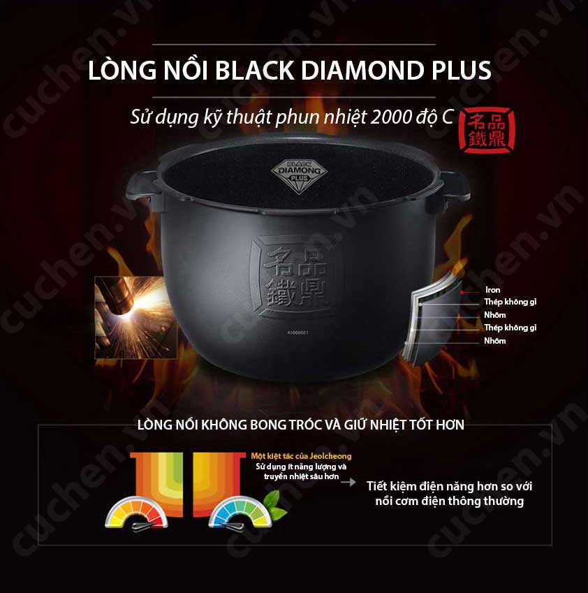 - Chất liệu lòng nồi: Black Diamond