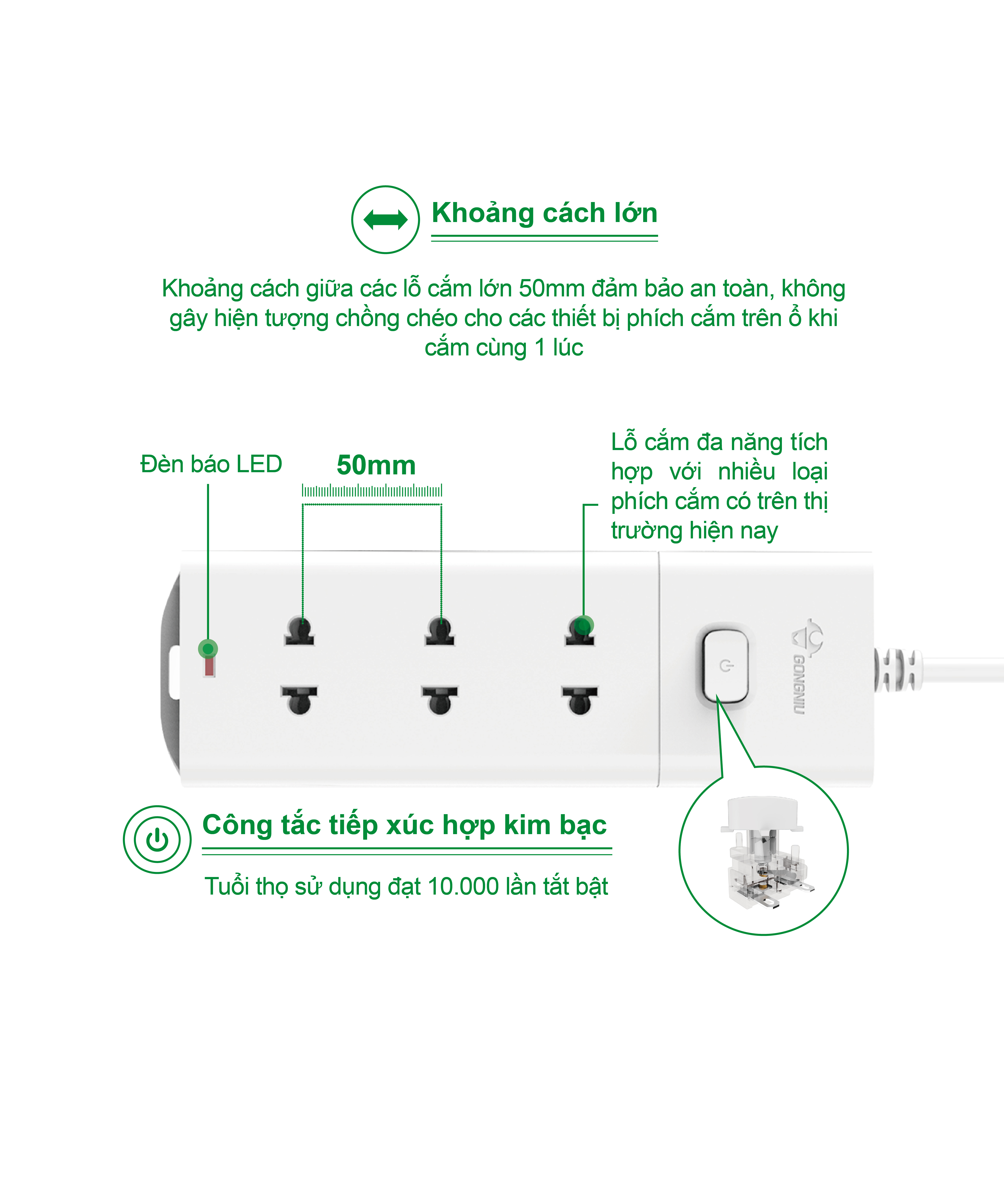 Ổ cắm điện nối dài thế hệ mới - Hàng Gongniu phân phối chính hãng tại Vietnam
