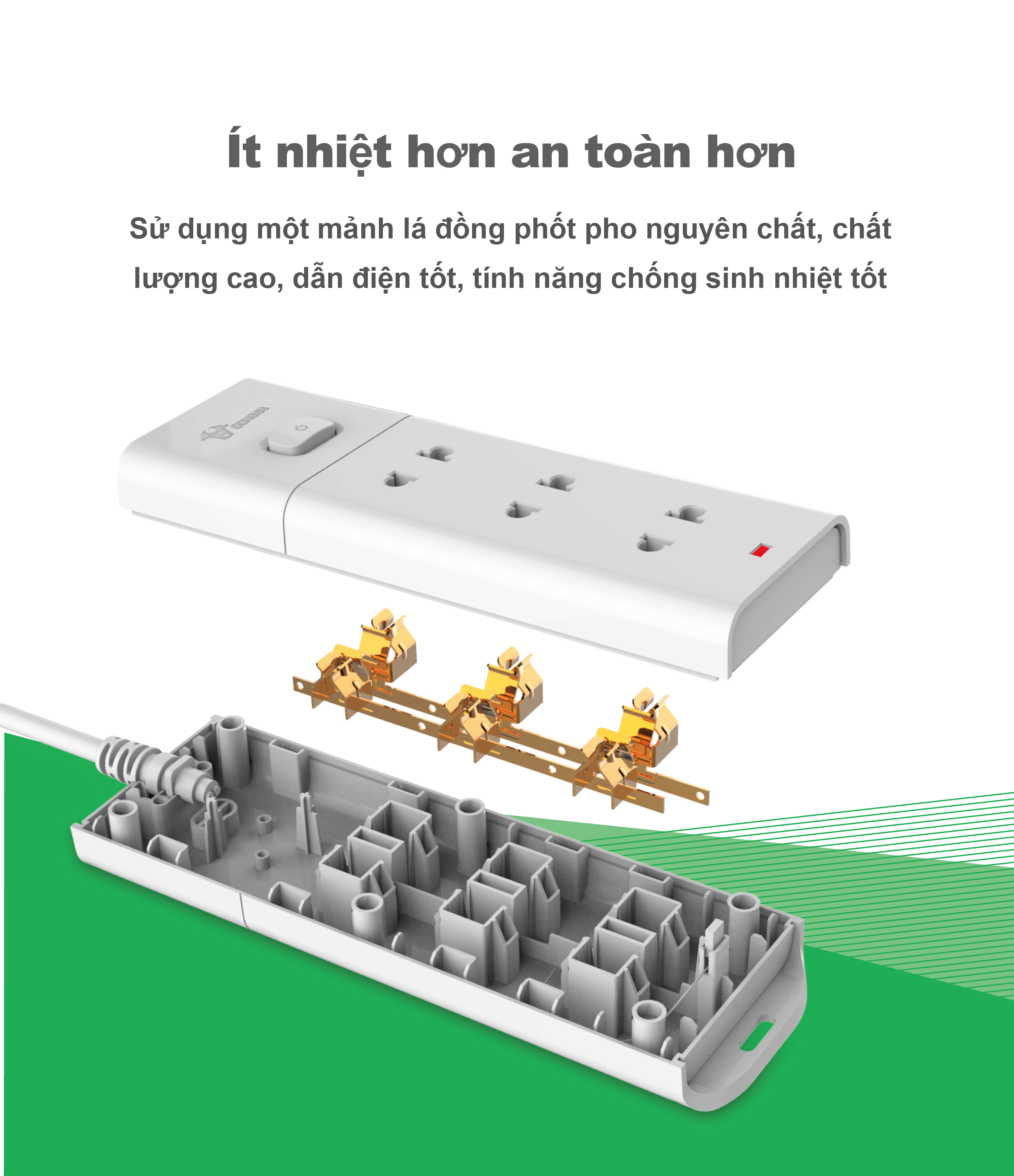 - Công suất chịu tải gấp 4 LẦN các loại ổ cắm điện trên thị trường. Nói KHÔNG với tình trạng QUÁ TẢI ĐIỆN, CHÁY NỔ.