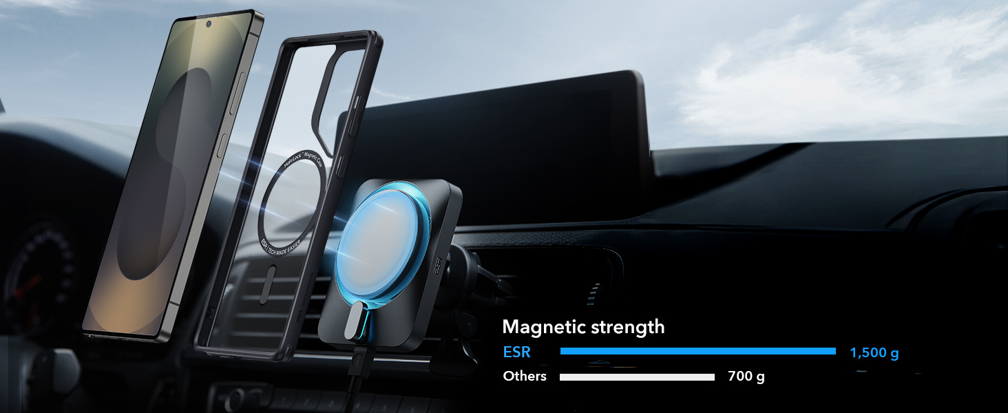Khóa từ mạnh hơn: nam châm tích hợp mạnh mẽ với lực giữ 1.500 g cho phép sạc không dây nhanh hơn, dễ dàng hơn với khóa an toàn trên phụ kiện Từ Tính