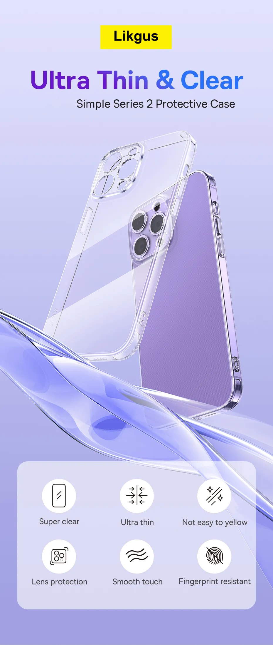 Mặt lưng trong suốt của ốp lưng Likgus không bị ố vàng theo thời gian, giúp duy trì độ sáng bóng và sang trọng cho điện thoại. Sản phẩm cũng dễ dàng vệ sinh, giữ cho thiết bị luôn như mới.