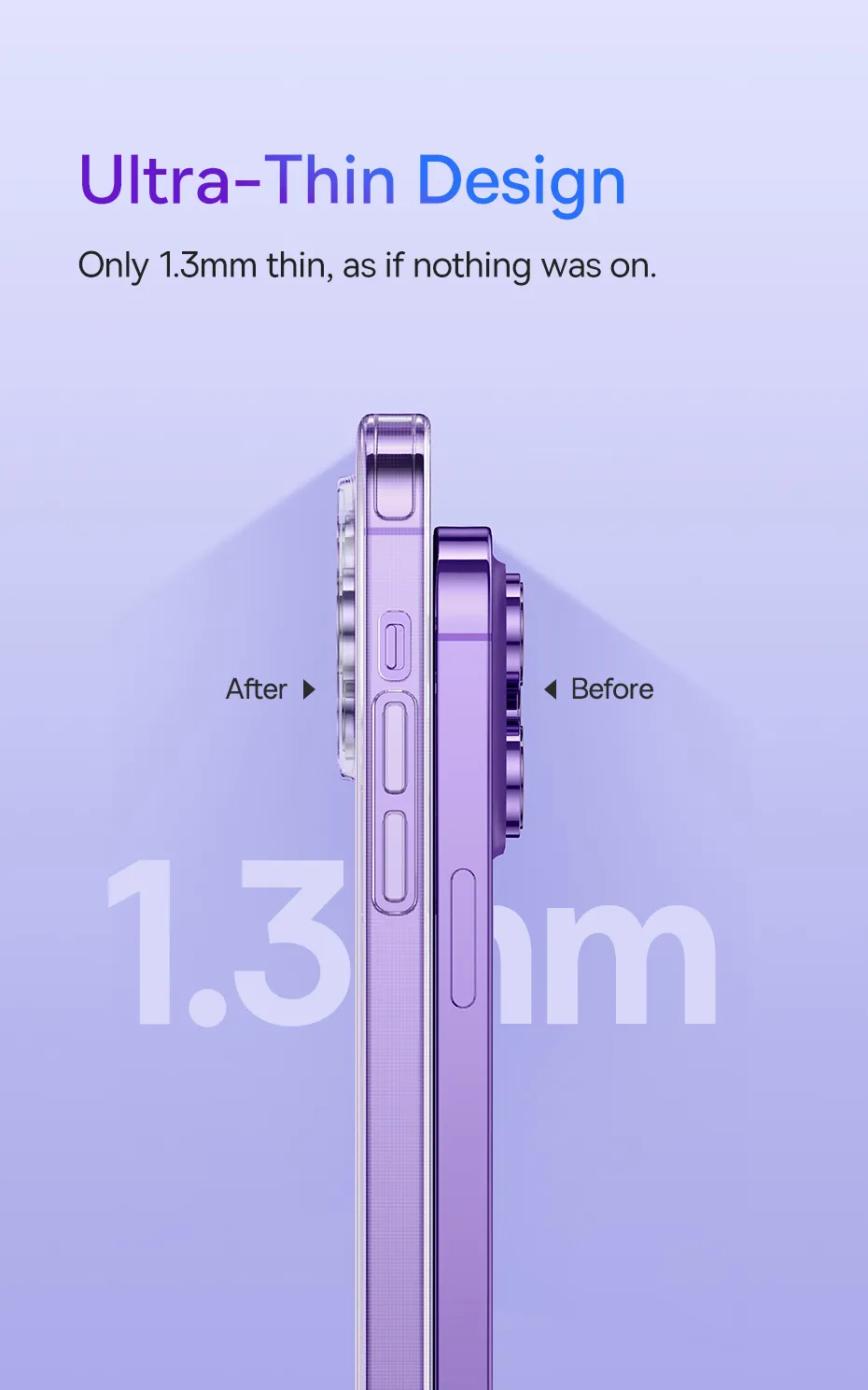 2. Siêu Mỏng 1.2mm – Cầm Nắm Thoải Mái Với độ dày chỉ 1.2mm, ốp lưng Likgus mang đến cảm giác cầm nắm nhẹ nhàng, thoải mái. Chất liệu PC cao cấp chống sốc hiệu quả, bảo vệ điện thoại an toàn mà không làm mất đi vẻ ngoài thanh lịch của iPhone.