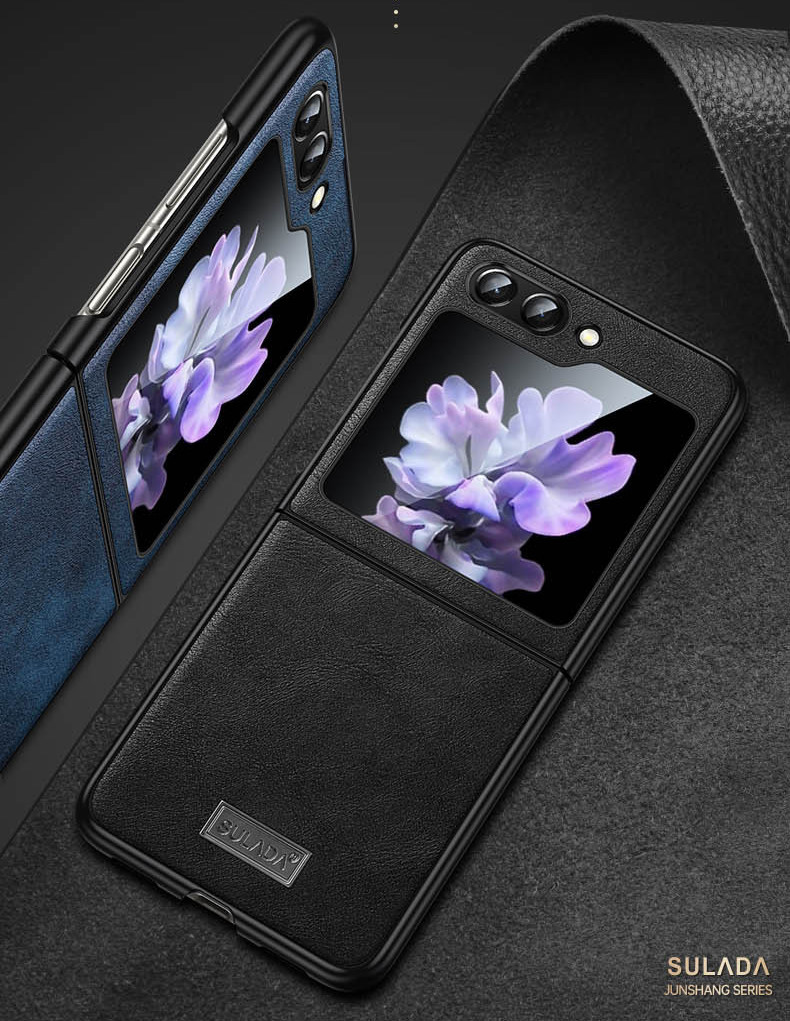 Ốp lưng da cho Samsung Galaxy Z Flip 5 hiệu SULADA viền mềm chống sốc cao cấp - Hàng chính hãng.