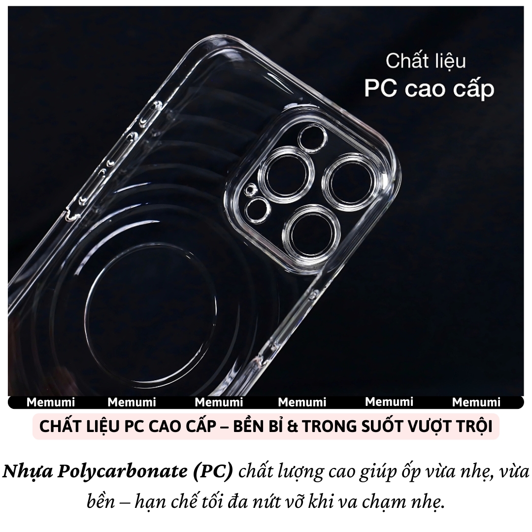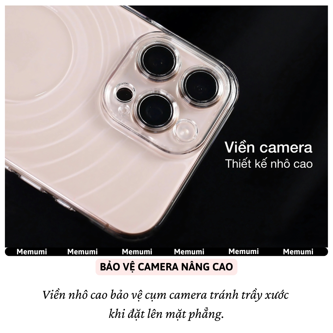 - Model: Ốp lưng trong suốt 3D bảo vệ camera cho iPhone 16 Pro Max / 15 Pro Max / 14 Pro Max / 13 Pro Max hiệu Memumi Ripple Clear
