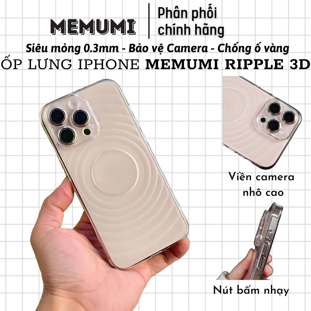 Ốp lưng trong suốt 3D bảo vệ camera cho iPhone 16 Pro Max / 15 Pro Max / 14 Pro Max / 13 Pro Max hiệu Memumi Ripple Clear - Siêu Mỏng 0.3mm, Chắc Chắn, chống ố vàng - Hàng nhập khẩu