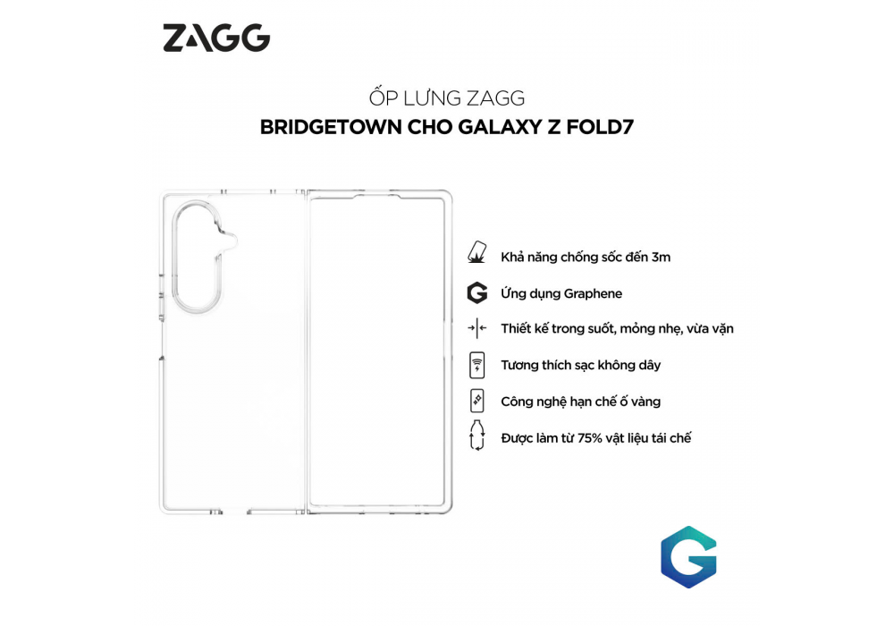 Ốp lưng trong suốt bảo vệ ZAGG Bridgetown/ Bridgetown Snap sạc từ tính cho Samsung Galaxy Z Fold 7 chống ố vàng, va đập và trầy xước_ Hàng Chính Hãng