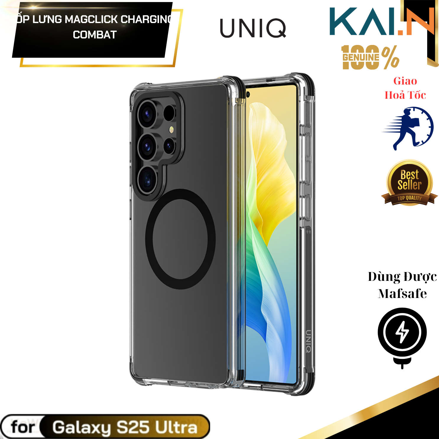 - Ốp lưng trong suốt sạc từ tính dành cho Samsung Galaxy S25 Ultra, UNIQ MAGCLICK CHARGING COMBAT, Chống Sốc, Chống Ố Vàng_ Hàng Chính Hãng