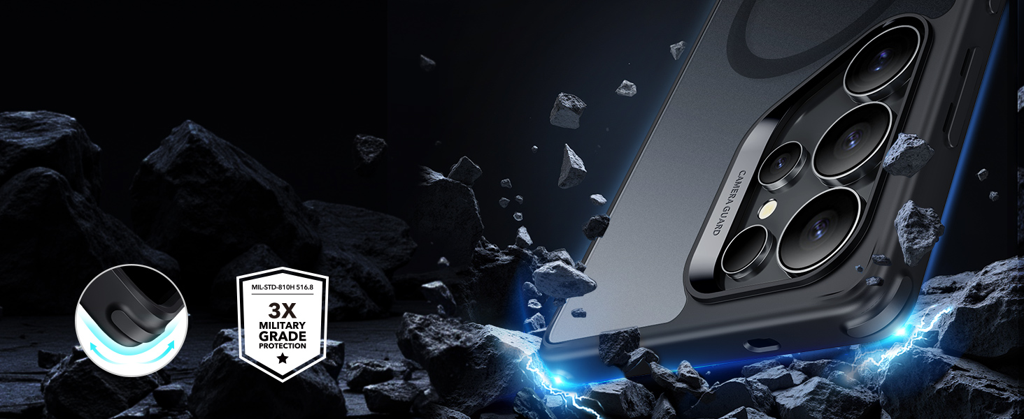 Được gia cố bằng các góc Air Guard hấp thụ sốc để cung cấp khả năng bảo vệ mạnh mẽ chống lại rơi và va đập