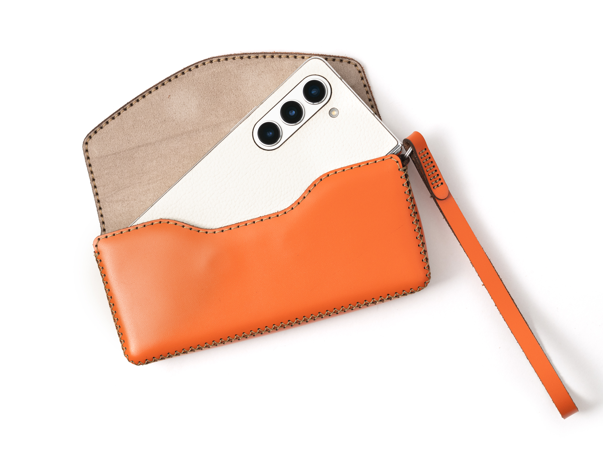 Mang dáng dấp thiết kế bìa thư, ví da điện thoại Samsung Galaxy Z Fold 5 không chỉ là món phụ kiện thời trang với phần nắp gập được sử dụng nam châm cho thao tác lấy điện thoại dễ dàng, các góc cạnh được được may bo tròn ôm sát sản phẩm để tránh va đập.