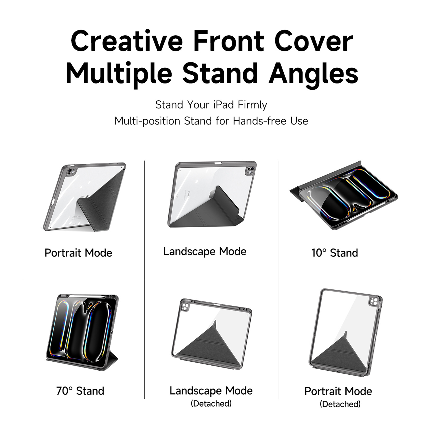Vỏ trước sáng tạo cung cấp nhiều góc đứng để rảnh tay khi xem, duyệt trên máy tính bảng. Vỏ sau trong suốt có thể tháo rời khỏi vỏ trước và sử dụng độc lập, rất lý tưởng để chơi game trên máy tính bảng.