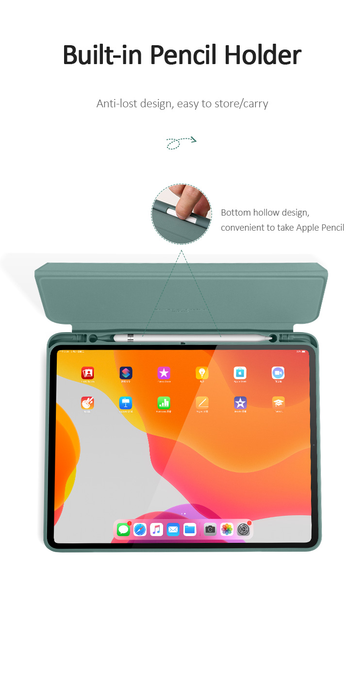 Với Bao da chống sốc cho iPad Pro 12.9 2020 hiệu USAMS US-BH589 có ngăn đụng bút Chiếc iPad Pro 12.9 2020 của Bạn sẽ tự động tắt màn hình khi bạn đóng nắp bao da lại, và sẽ mở màn hình khi bạn mở nắp bao da ra.