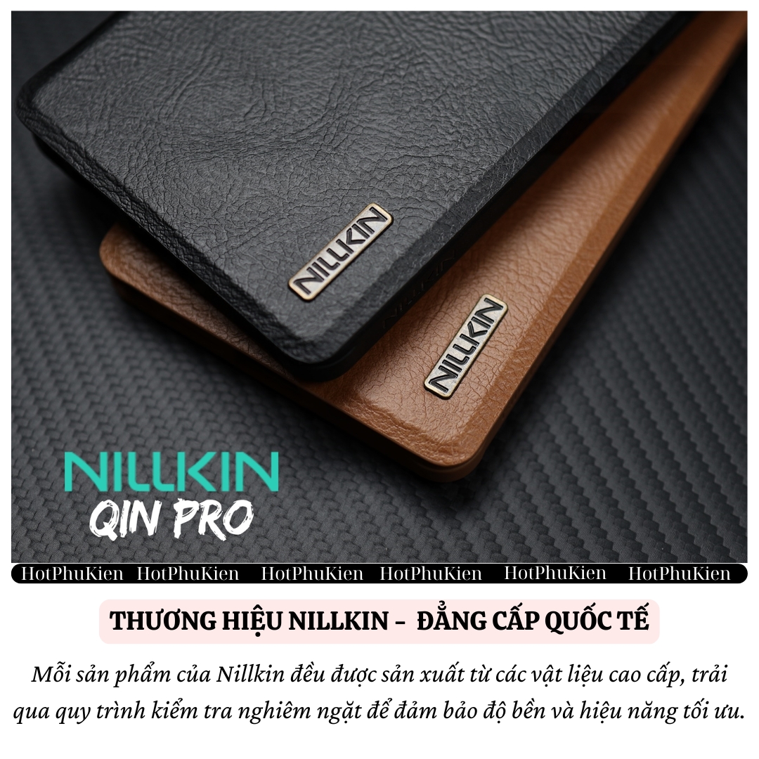 - Bao da Nillkin Qin Pro được làm từ da PU cao cấp, bề mặt mềm mại, chống bám bụi và trầy xước.