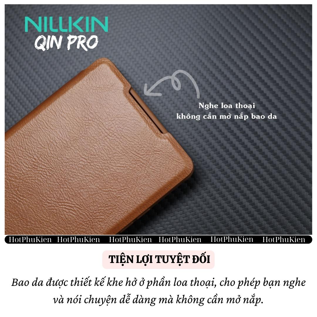 - Bao da Nillkin Qin Pro được làm từ da PU cao cấp, bề mặt mềm mại, chống bám bụi và trầy xước.