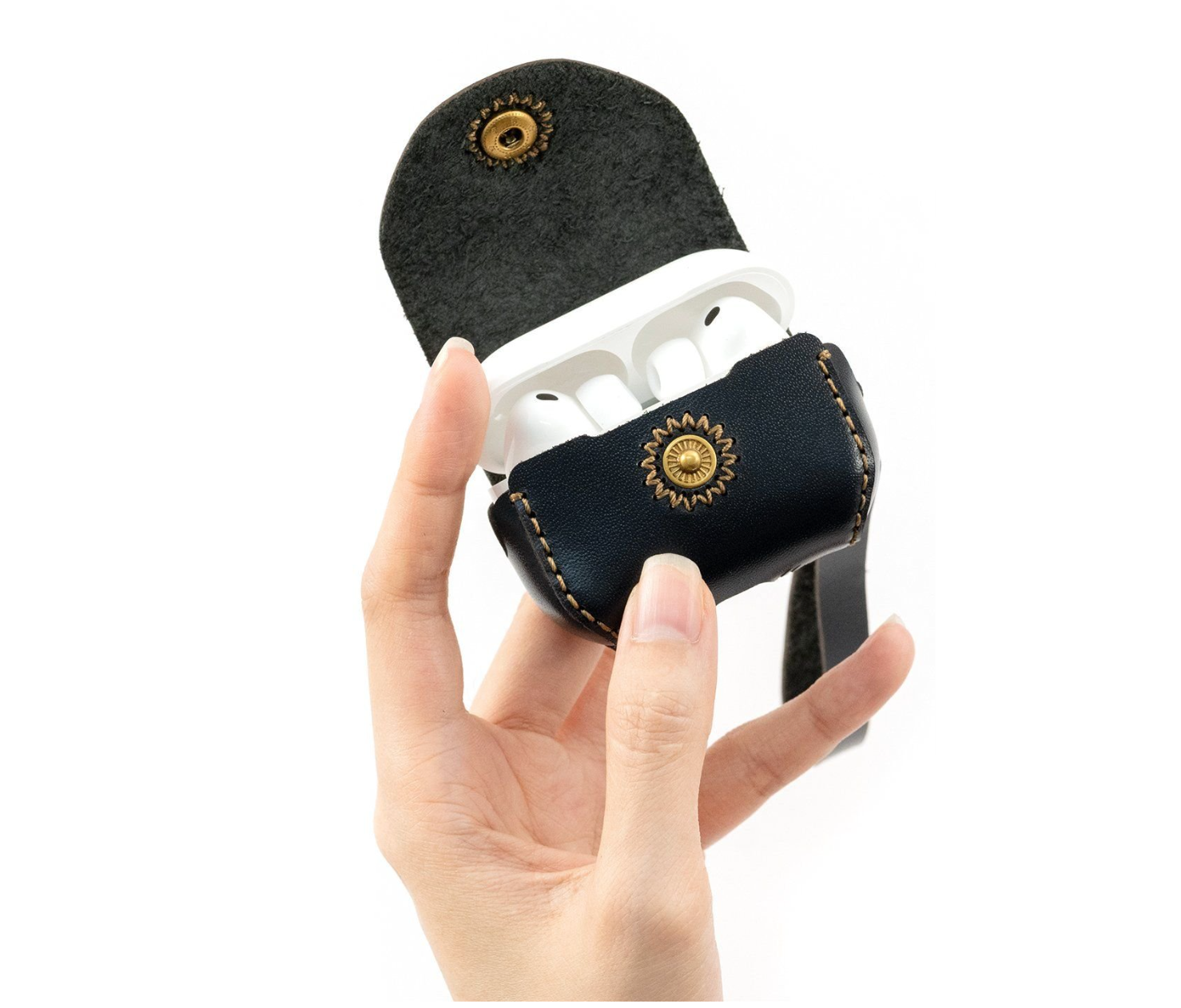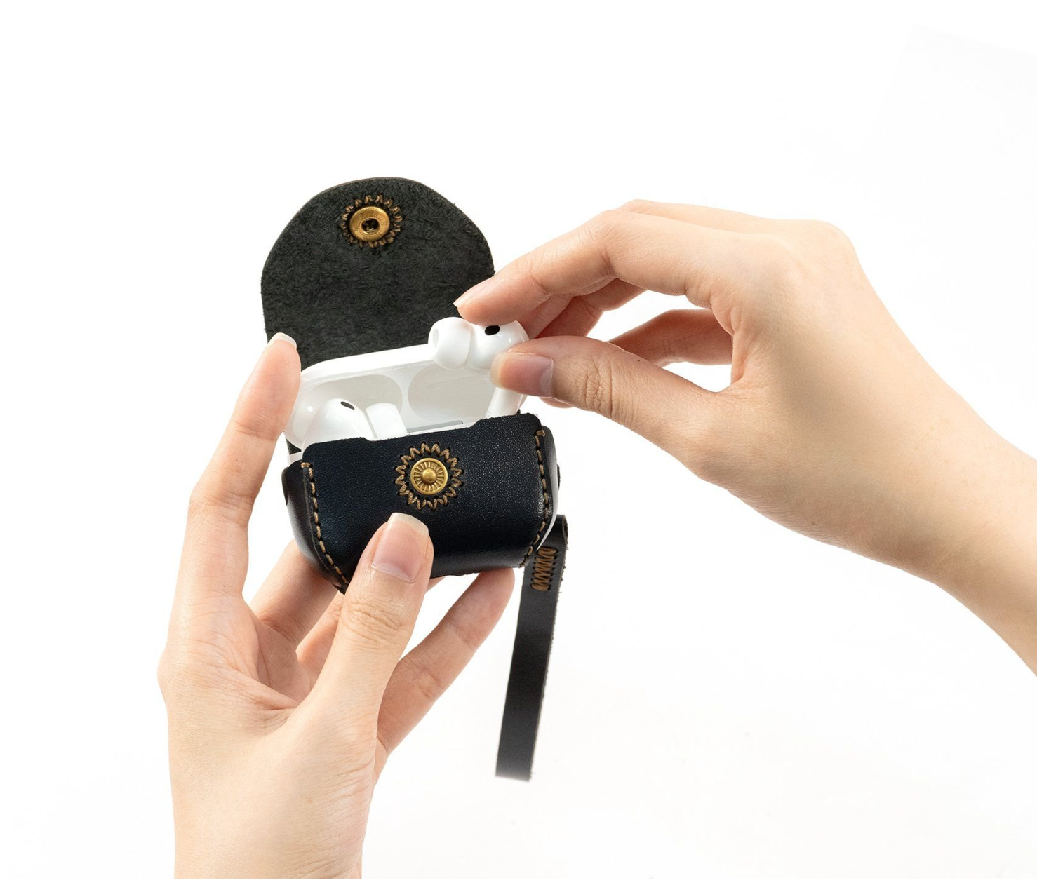 Sản phẩm gồm bao da Apple Airpods Pro 3 và dây đeo tay. Thiết kế tối giản với đường cắt góc botròn mềm mại ôm sát sản phẩm. Lớp da bò thô bên trong giúp làm sạch bề mặt hộp đựng tai nghe và tạo cảm giác thân thiện, thao tác đóng mở sẽ dễ dàng hơn với thiết kế nút bấm và dây đeo tay thời trang tiện dụng. Tất cả tạo nên sự khác biệt với bao da Airpods Pro 3 . Dưới đáy có khoét để tiện việc cắm dây sạc.