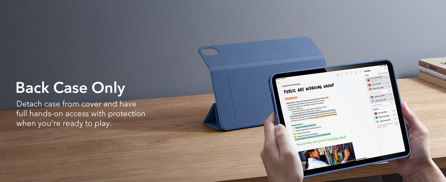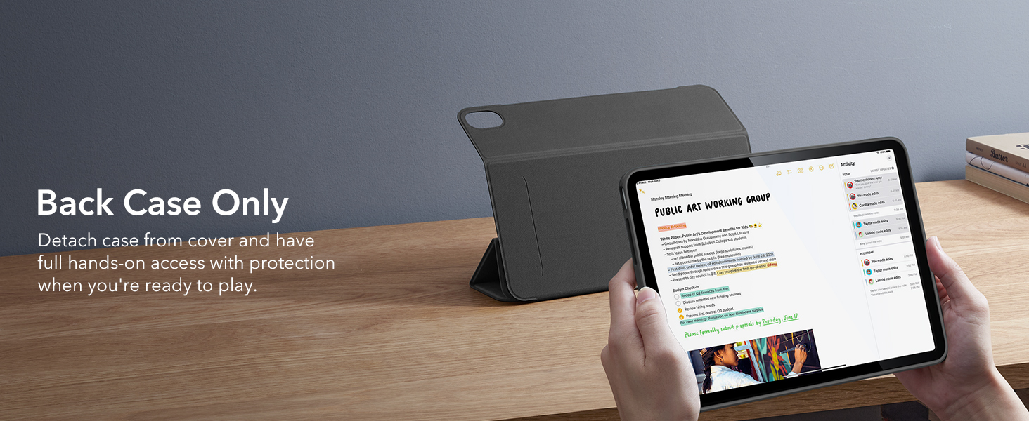 - Vỏ từ tính có thể tháo rời: nam châm mạnh bên trong của vỏ iPad Pro này giúp bạn dễ dàng gắn vào vỏ sau và gập nó lại thành một giá đỡ ổn định với nhiều chế độ ngang và dọc hoặc tháo hoàn toàn để có công thái học tốt hơn khi chơi game