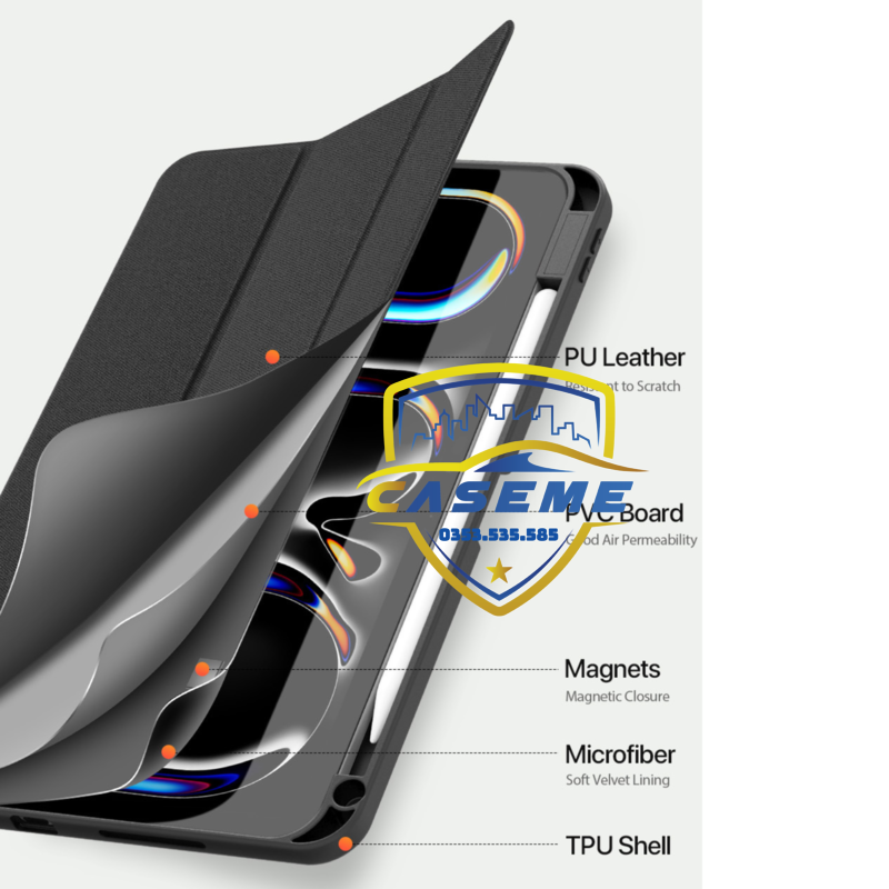 [iPad Pro M4] Bao Da Dành Cho iPad Pro 11 inch M4 2024, iPad Pro 13 inch M4 2024 Dux Ducis Domo Series Có Khe Cắm Bút - Hàng Chính Hãng