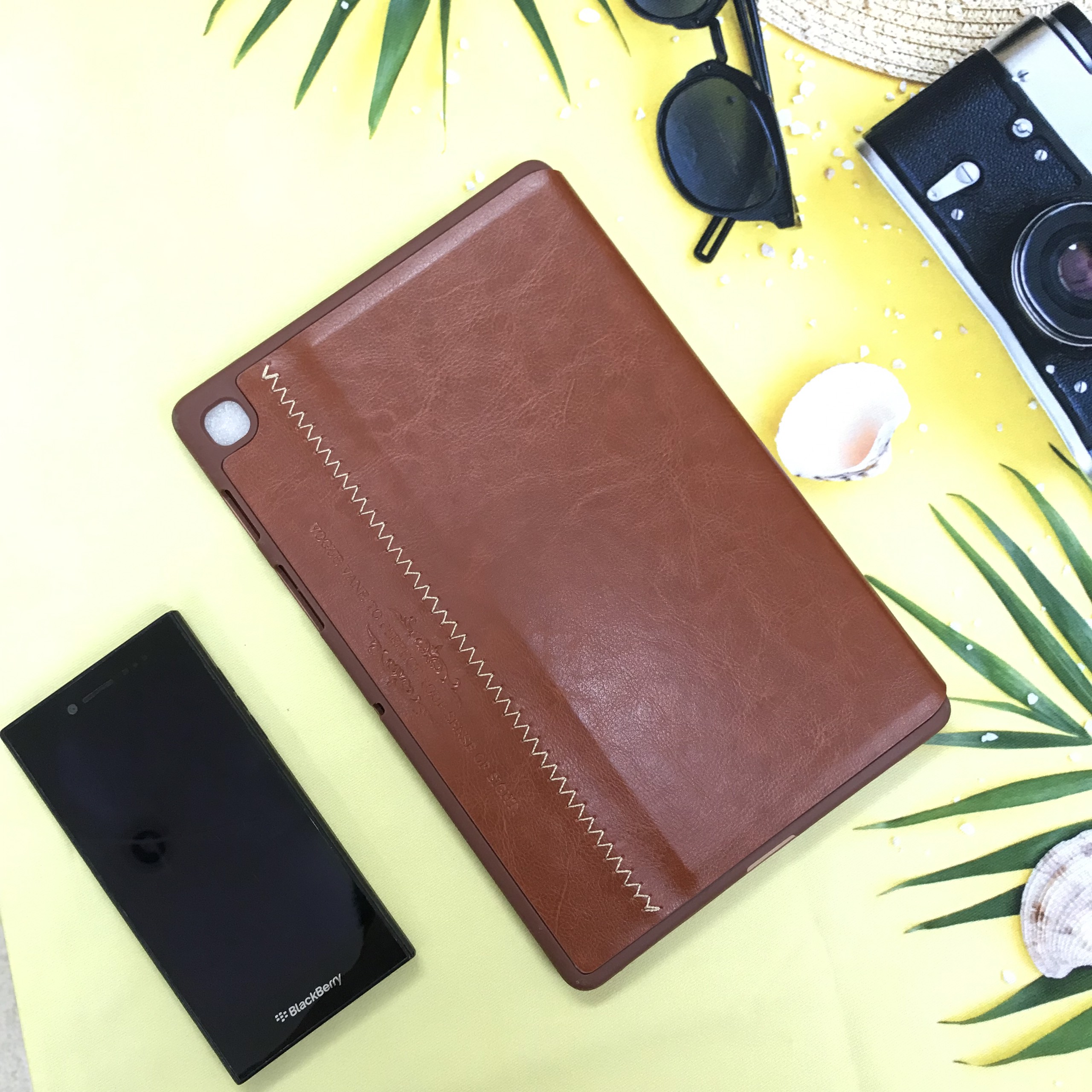 Mặt trước có tính năng smart cover tự động tắt, bật màn hình khi đóng, mở bao da. Bao da có thể dựng đứng giúp bạn làm việc, đọc báo, xem phim, giải trí dễ dàng hơn.
