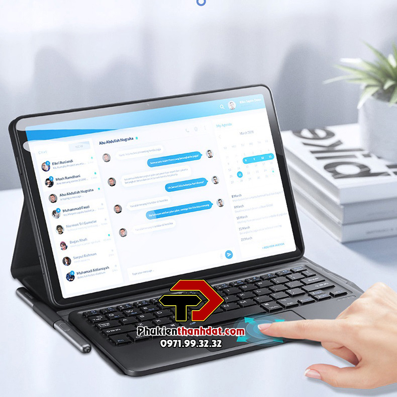 Bộ sản phẩm bao gồm: Vỏ bao da, bàn phím bluetooth có bàn di chuột, dây sạc cho bàn phím.