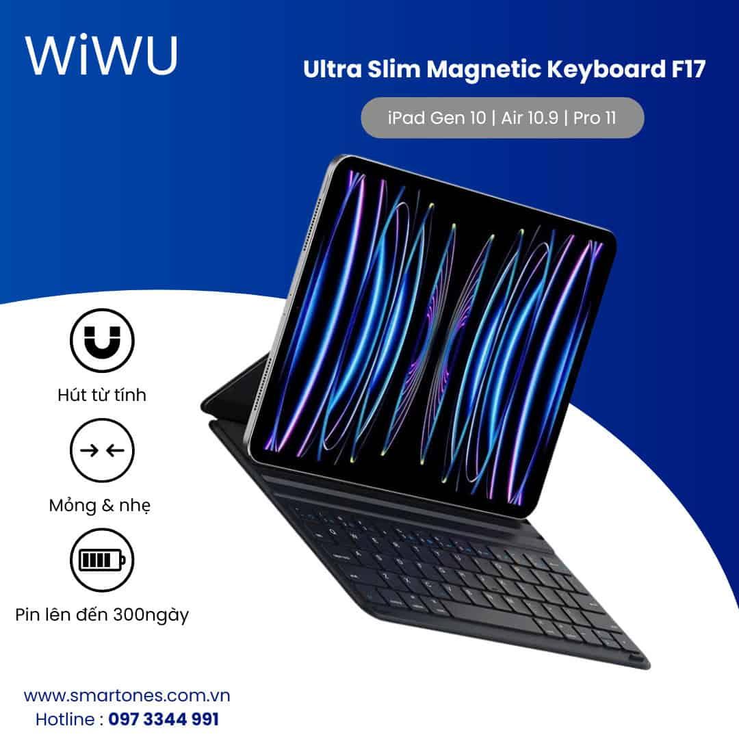 Bao da nam châm kèm bàn phím Wiwu Ultra Slim Magnetic Keyboard F17 cho iPad A16 Gen 11 , Air11inch M3 , Air 13inch M3, Gen 10 , Air 4 /5/ Air 6 11inch , iPad 12.9 M1/M2 , iPad Pro 11inch M1/M2 - Hàng chính hãng