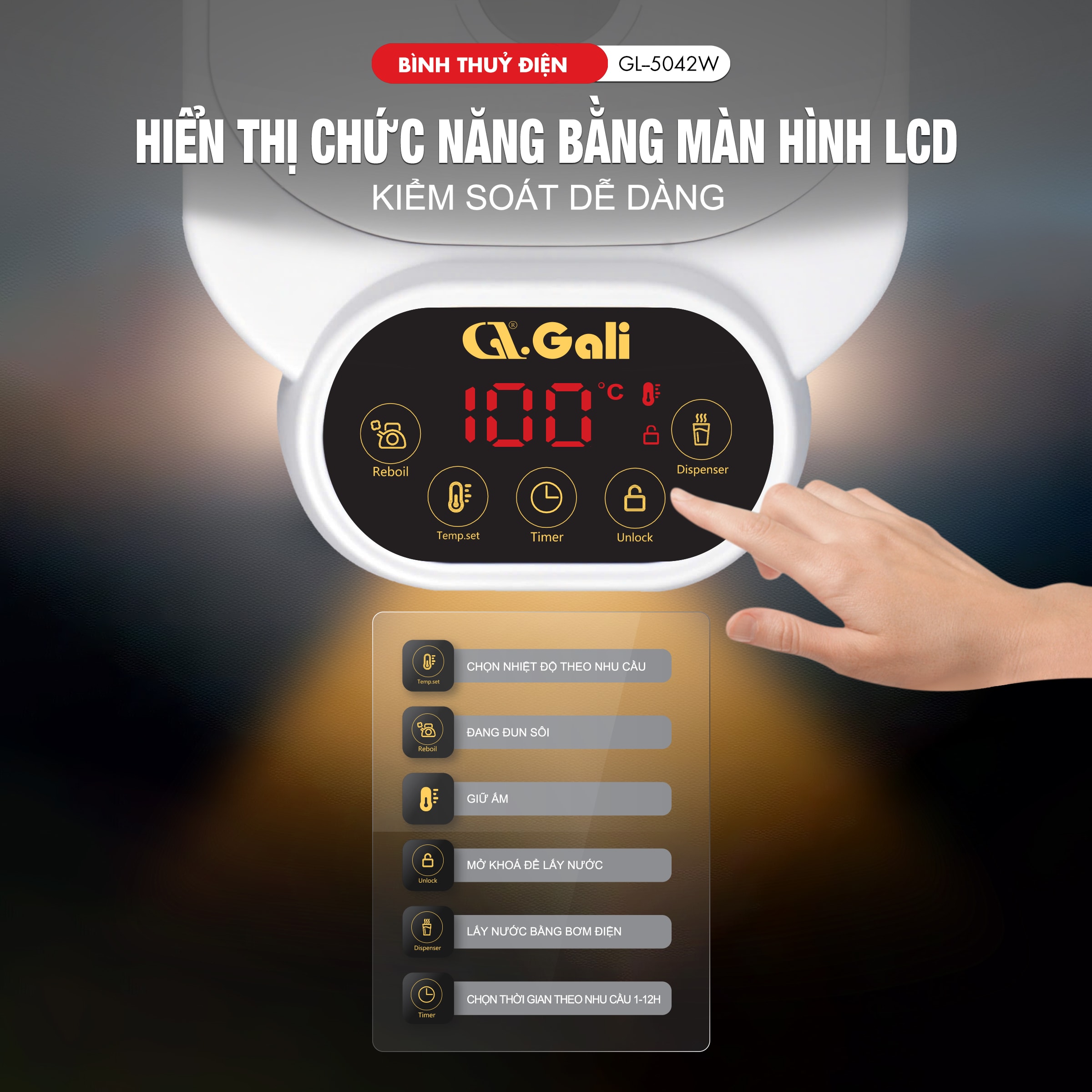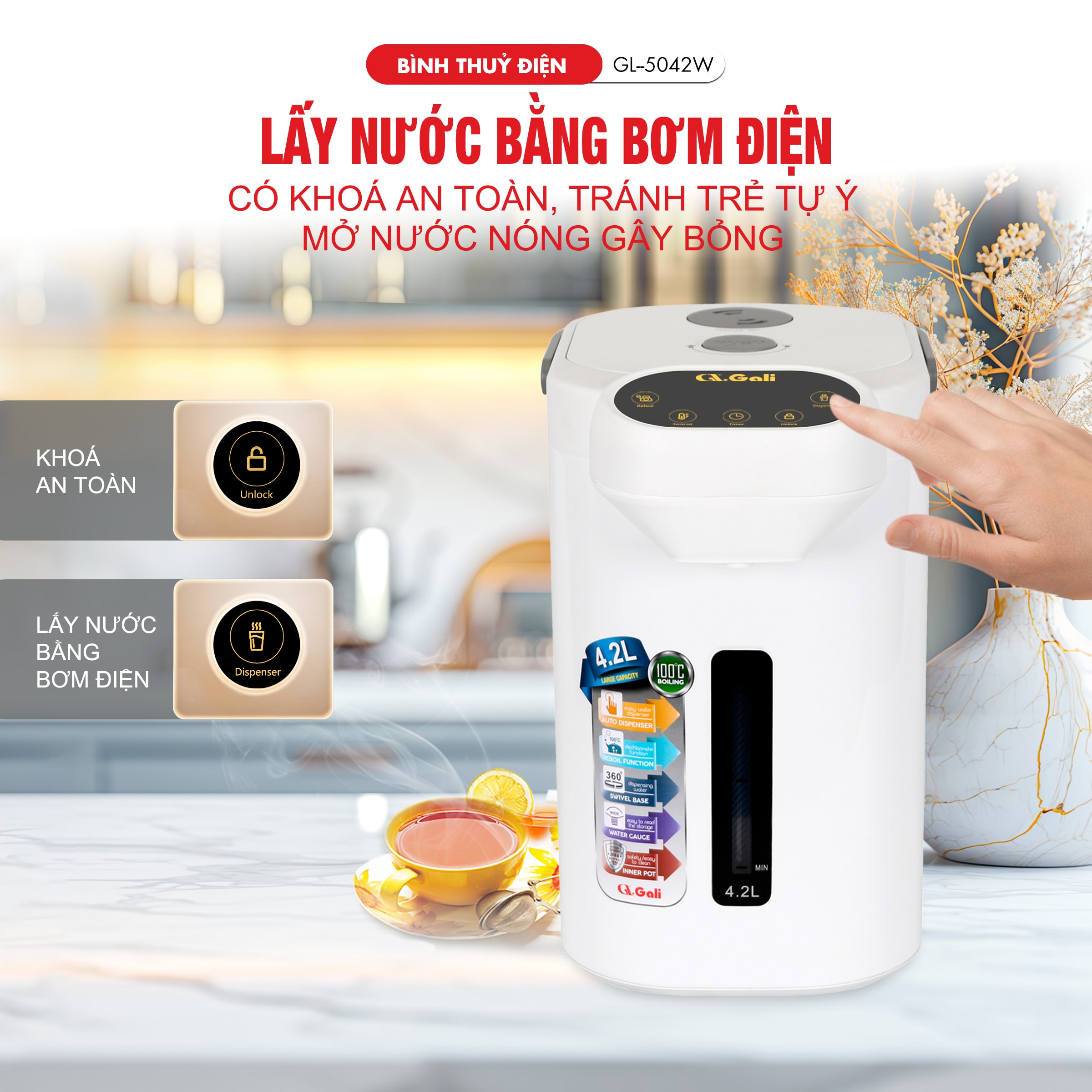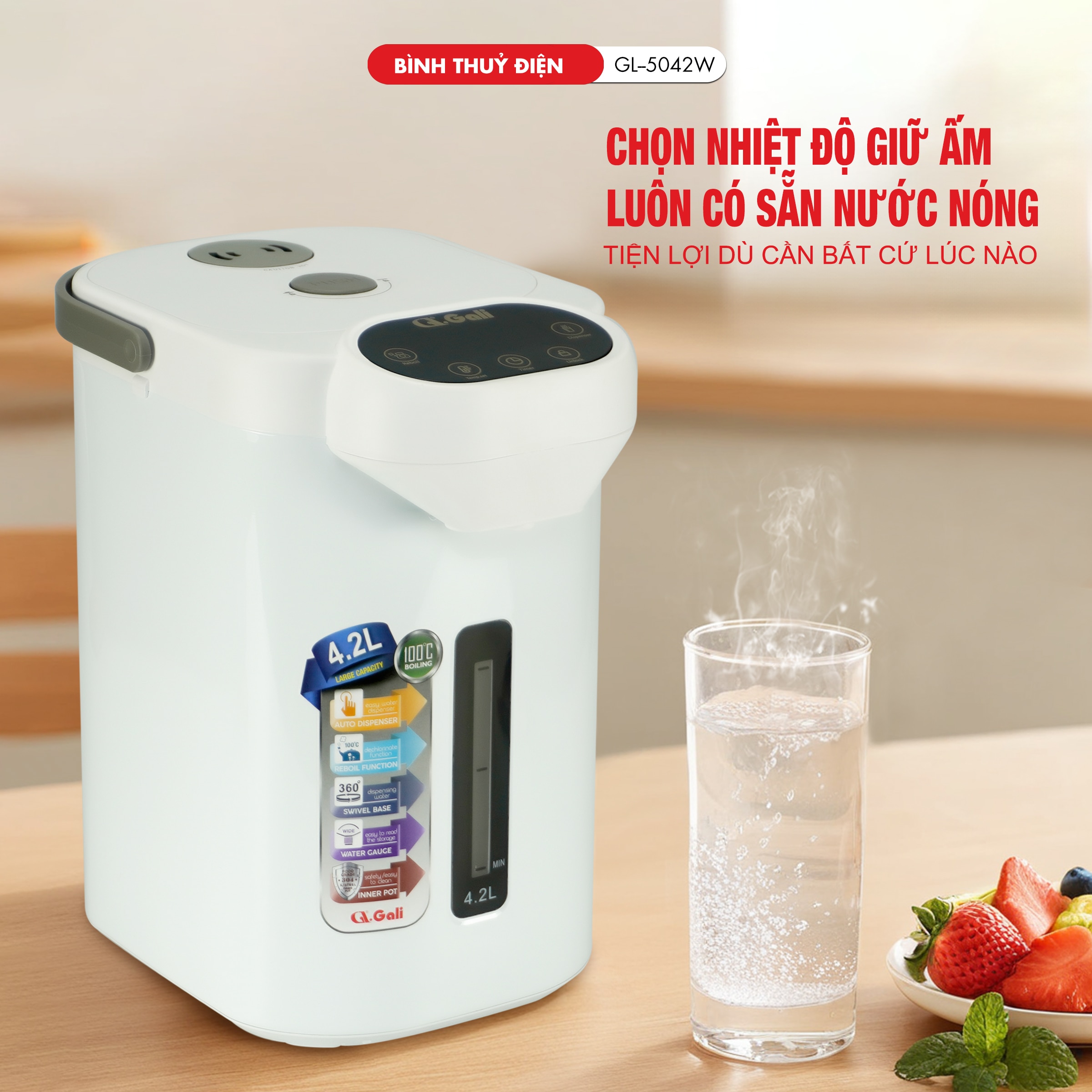 Bình thuỷ điện Gali GL-5042W - Dung tích 4.2L, Đun nước, Giữ ấm, Giữ nhiệt. Đun sôi nhanh, Tiện lợi. BH 24 Tháng