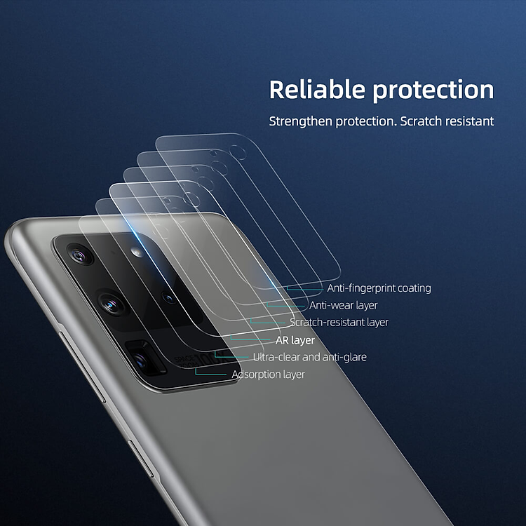 Ngôn ngữ thiết kế hoàn toàn mới, tỉ mỉ đến từng chi tiết nhỏ, được cấu tạo bới 6 lớp khác nhau mang lại cảm sự chắc chắn cho tấm dán camera S20 Ultra.