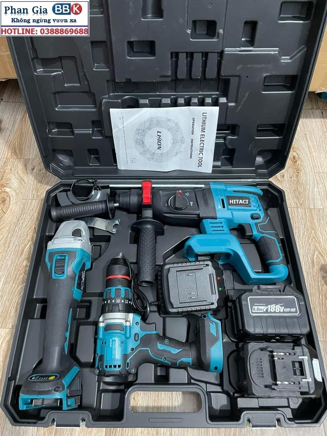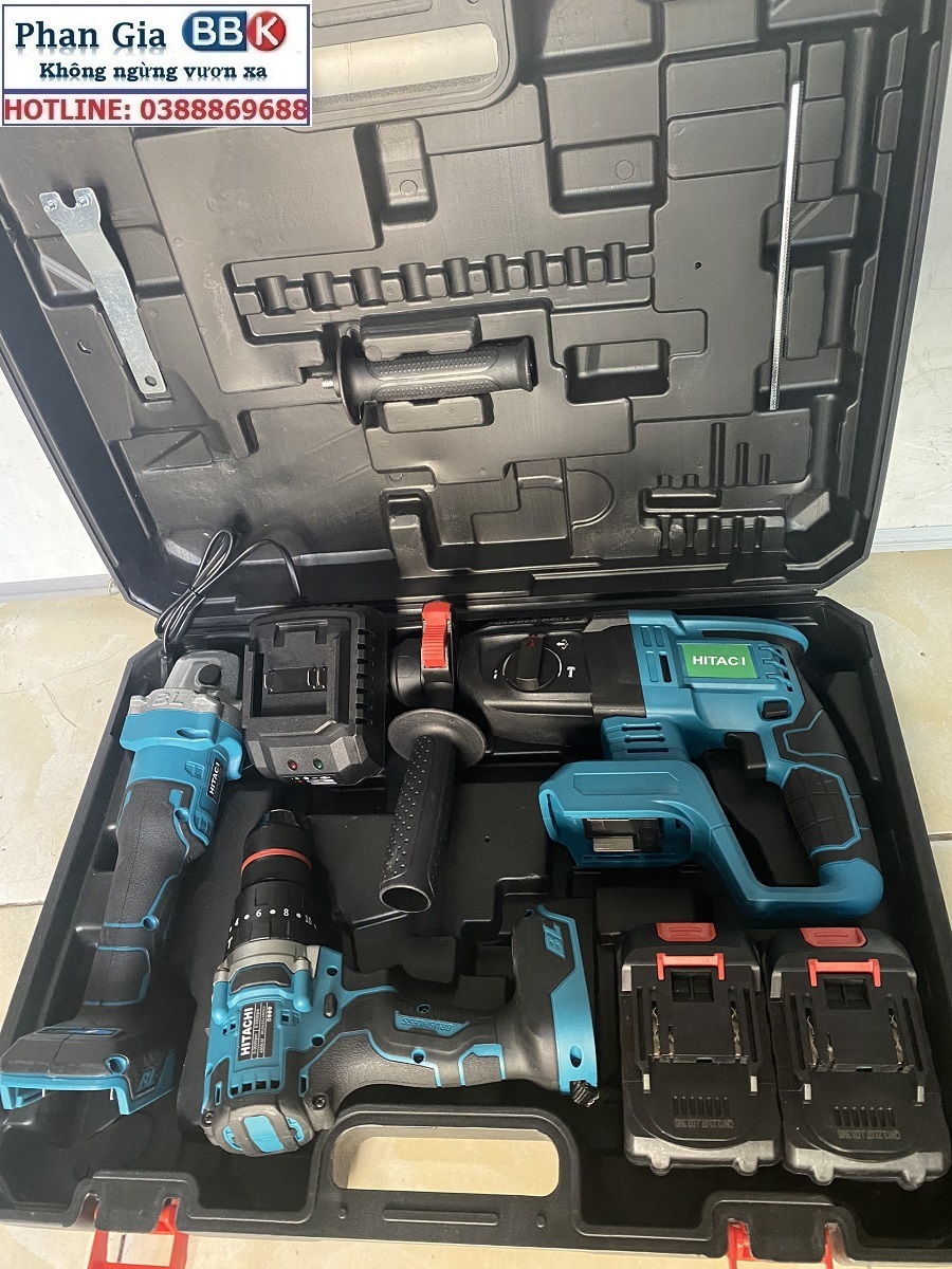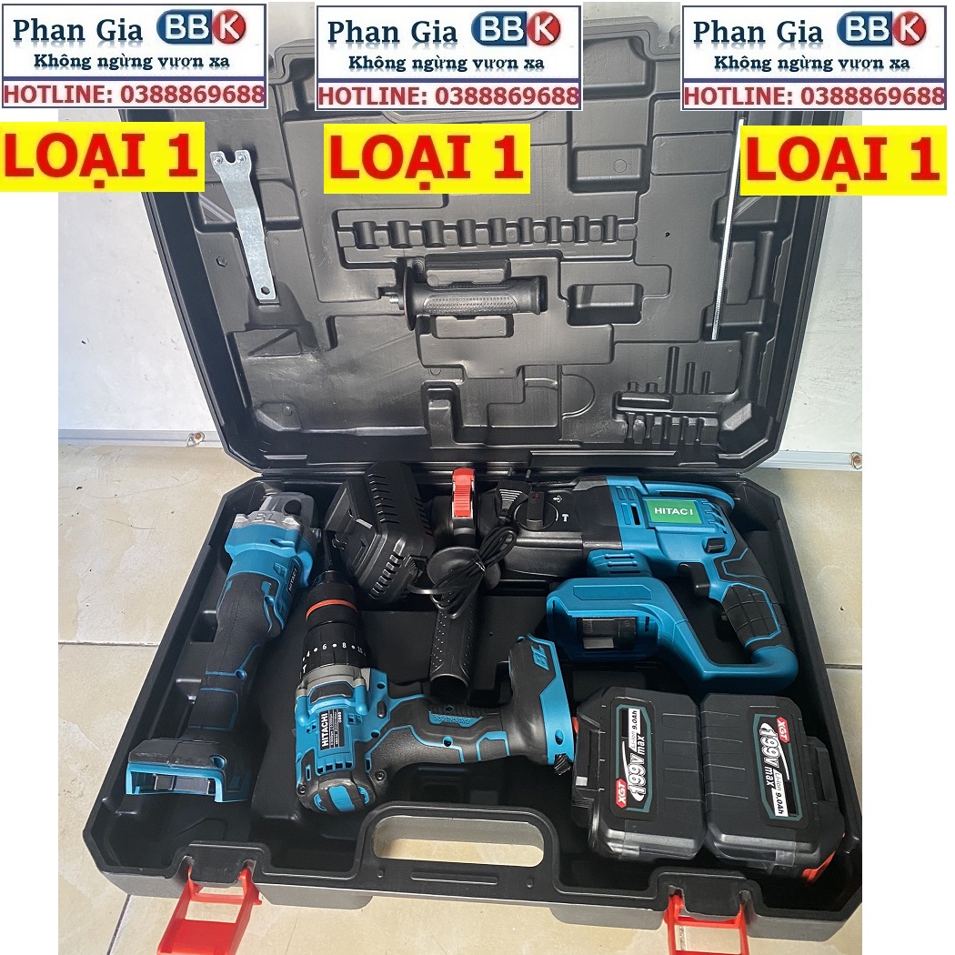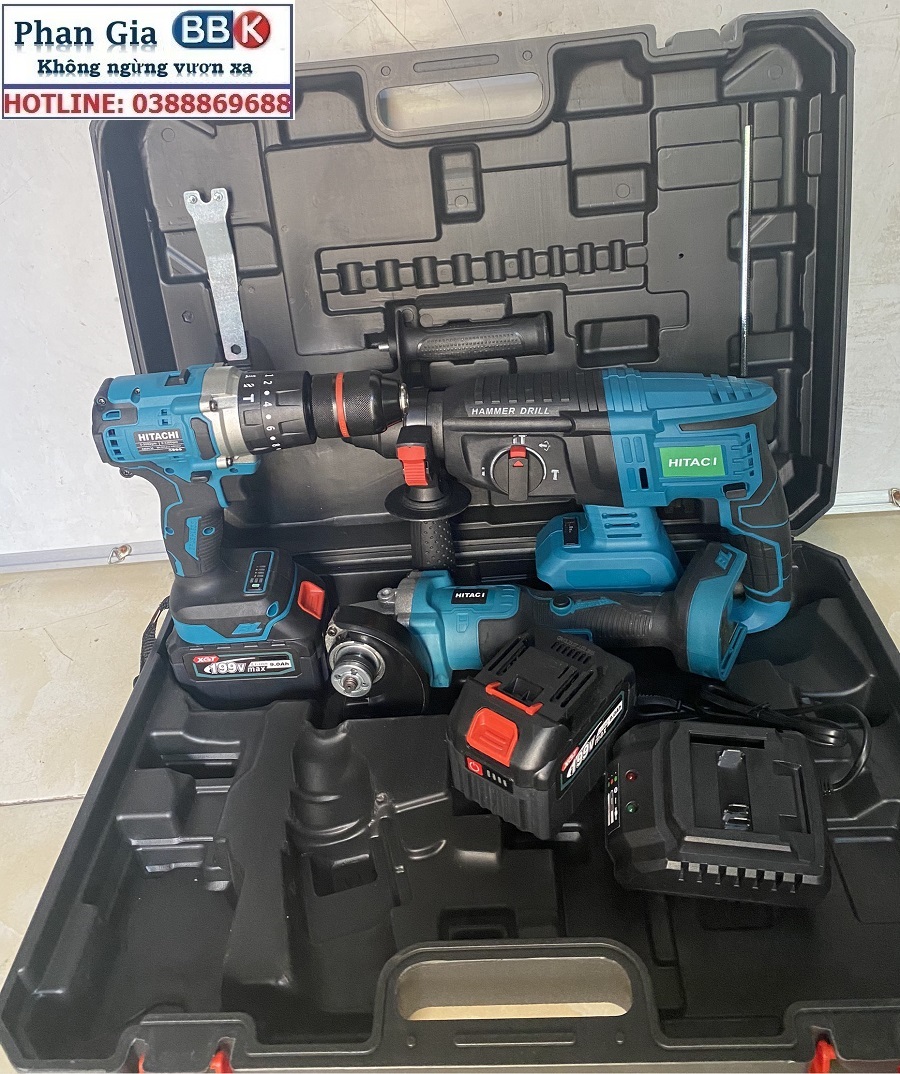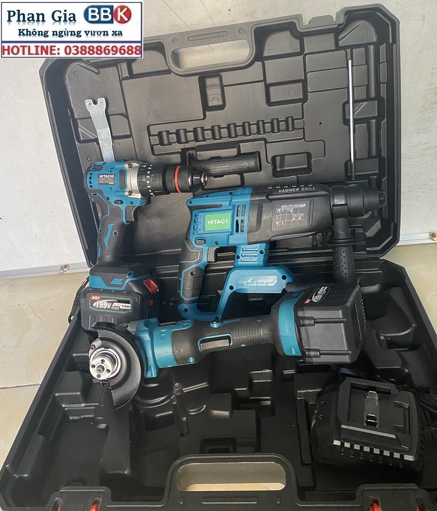 Bộ Combo Máy Khoan Đục Bê Tông, Máy Mài Và Máy Khoan Pin Dùng Pin 199V, 2 Pin 15Cell, Máy Khoan Siêu Khỏe, Siêu Bền (Tặng Hộp Đựng)