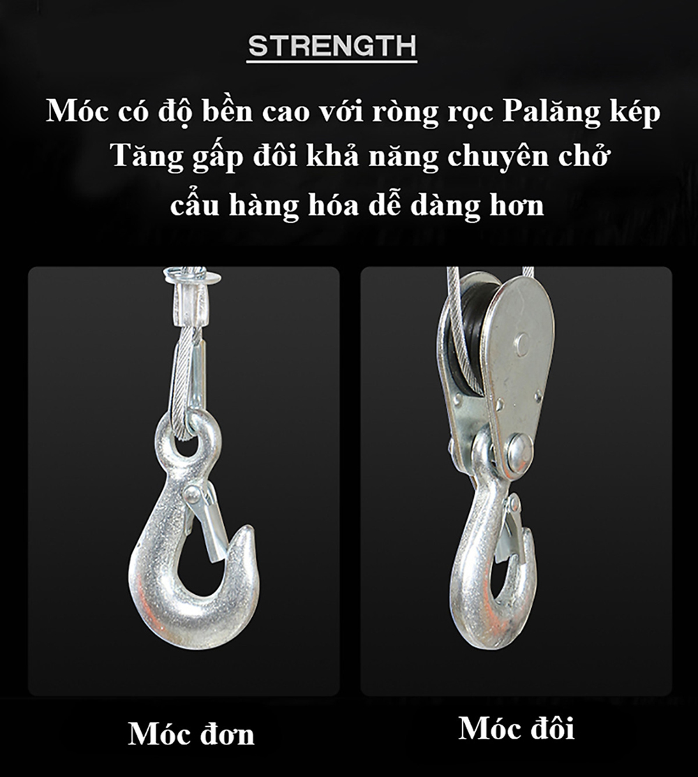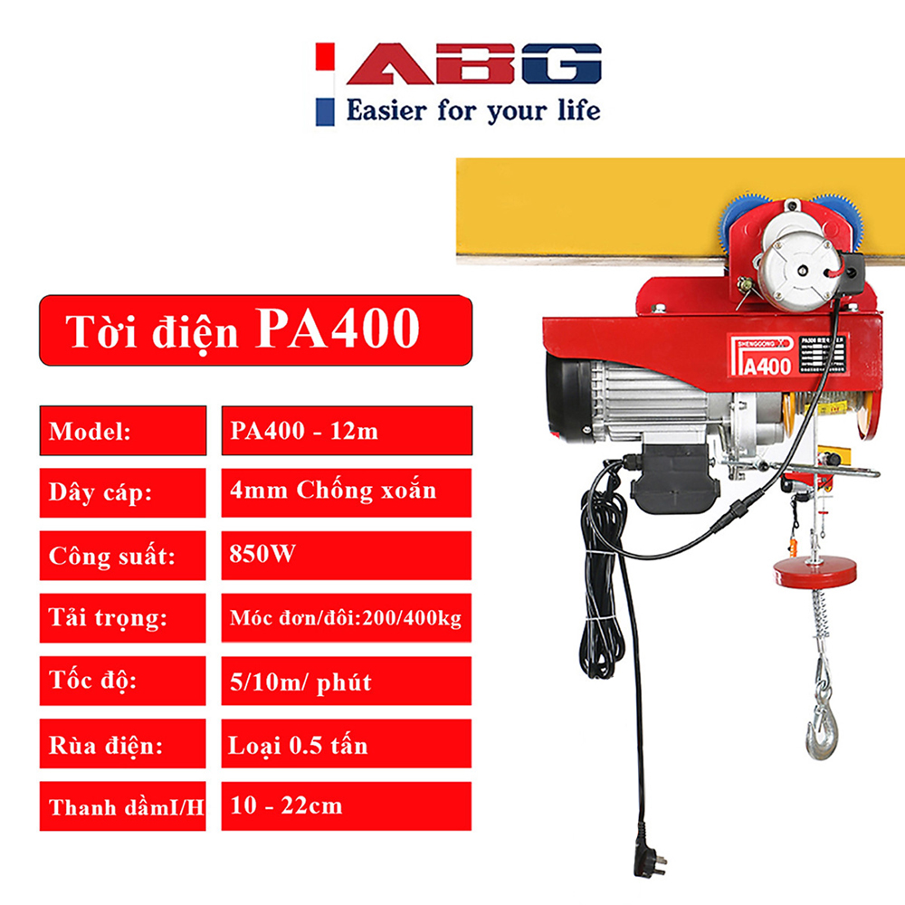 Bộ tời điện kèm Rrùa ABG PA400 (200/400kg) 12 Mét - giúp máy tời treo nâng hạ vật nặng dễ dàng, nâng kéo linh hoạt, hiệu quả cao - Hàng chính hãng