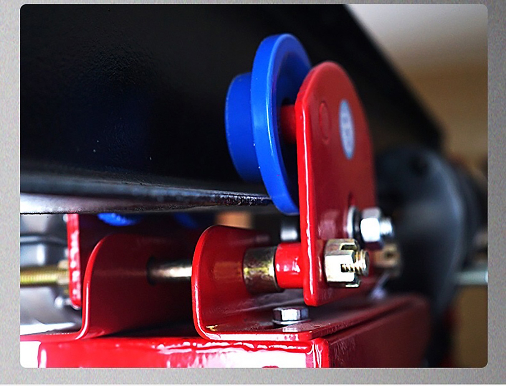 - Tiến hành lắp đặt con rùa điện vào máy tời mini. Đo độ rộng của cánh dầm để xác định khoảng cách của 2 cụm bánh xe. Bạn có thể tháo bớt long đen 2 bên để thu nhỏ lại khoảng cách sao cho phù hợp với cánh dầm.