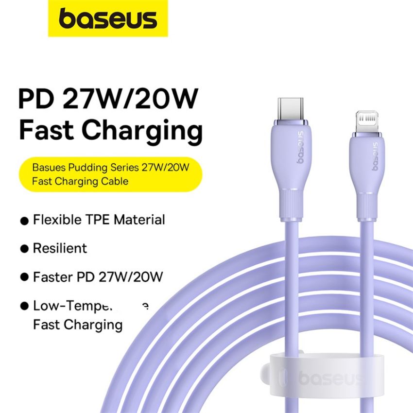 Cáp sạc nhanh Baseus Pudding Series Fast Charging Cable Type-C to iP 20W là một cáp sạc nhanh được thiết kế để sử dụng với các thiết bị của Ap-ple như iPhone và iPad. Cáp sử dụng đầu cắm USB-C chuẩn và đầu cắm Light-ning cho phép sạc nhanh với dòng điện lên đến 20W. Cáp có thiết kế độc đáo với lớp vỏ ngoài được làm bằng chất liệu TPE, cho phép người dùng có thể uốn cong lên đến 20000 lần, với nhiều màu sắc phù hợp với thế hệ Gen Z. Ngoài ra cáp có độ dài 1m, 2m giúp người dùng sử dụng một cách tiện lợi và linh hoạt.